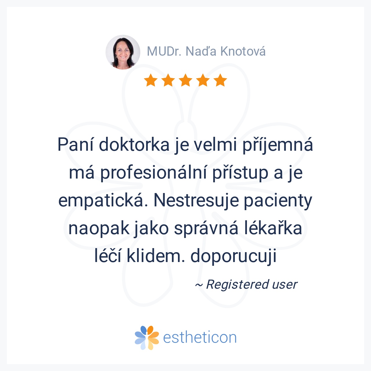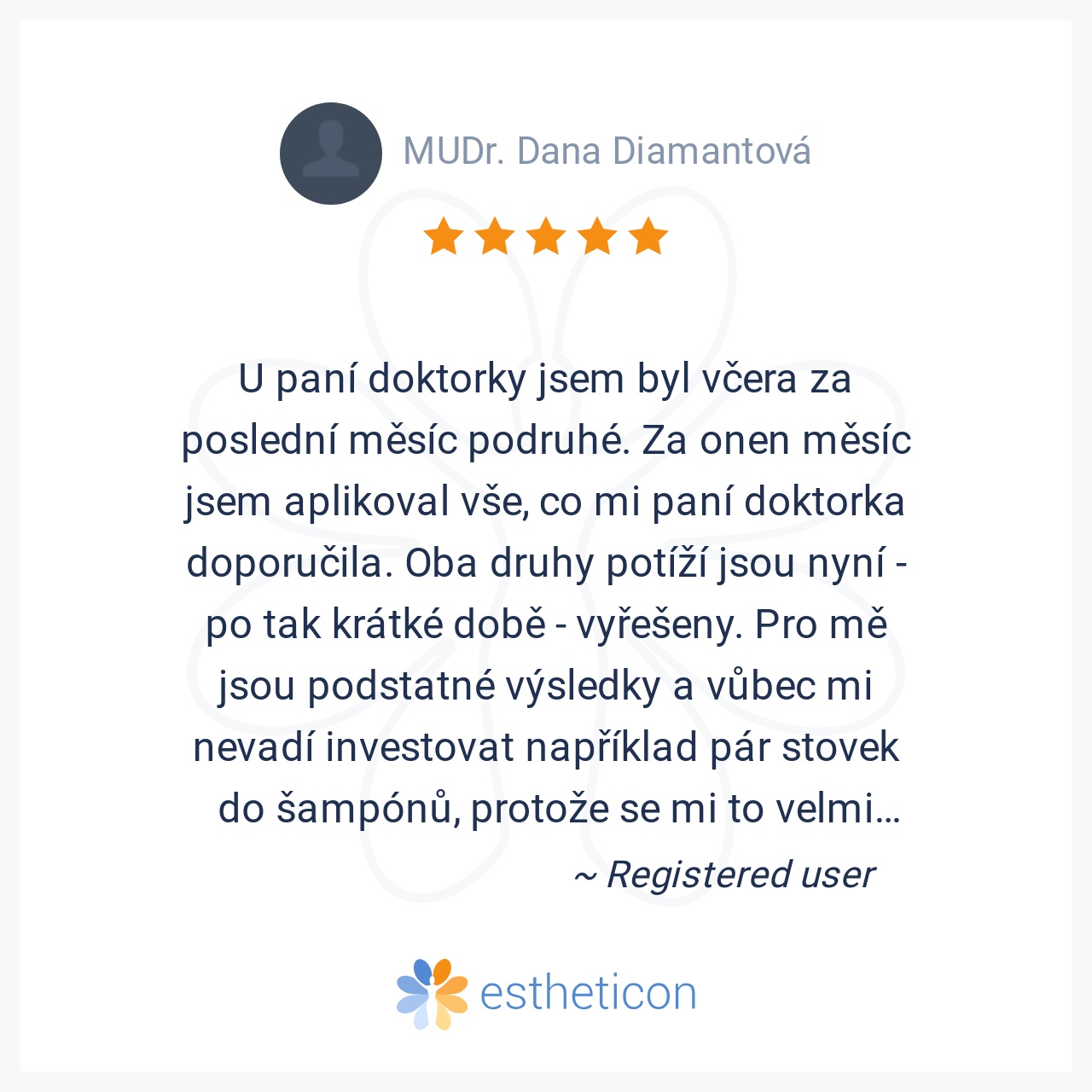 MUDr. Dana Diamantová je absolutní profesionál. Moje spokojenost se nedá ani popsat. Je báječná a děkuji, že je.