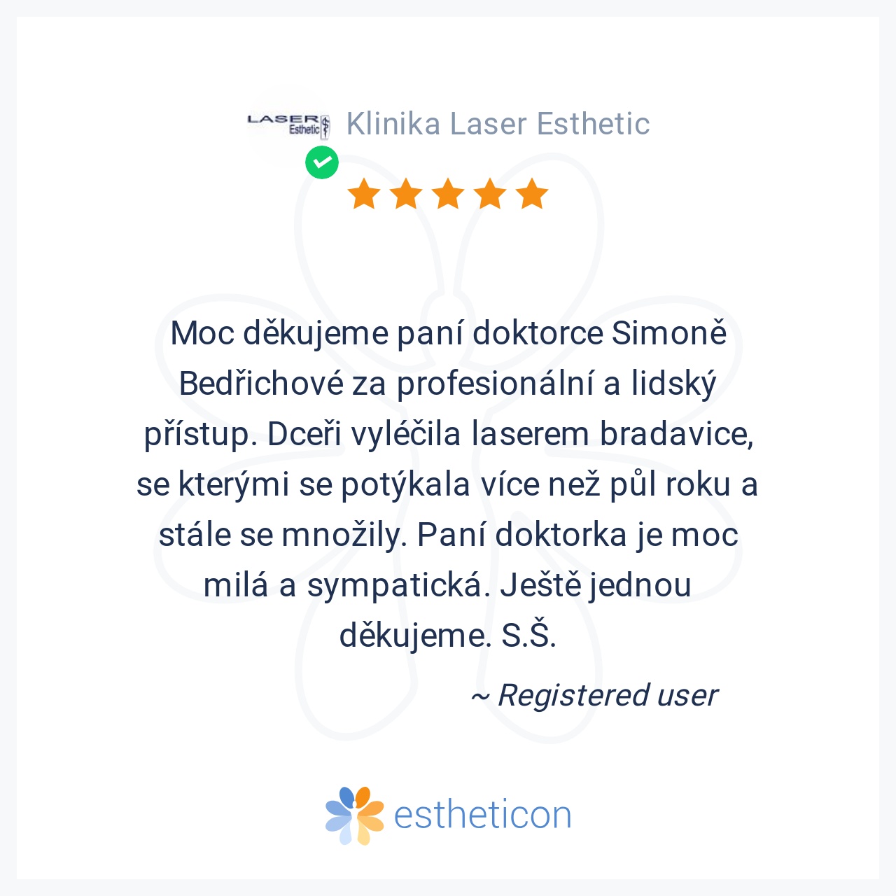 Moc děkujeme paní doktorce Simoně Bedřichové za profesionální a lidský přístup. Dceři vyléčila laserem bradavice, se kterými se potýkala více než půl roku a stále se množily. Paní doktorka je moc milá a sympatická. Ještě... Více
