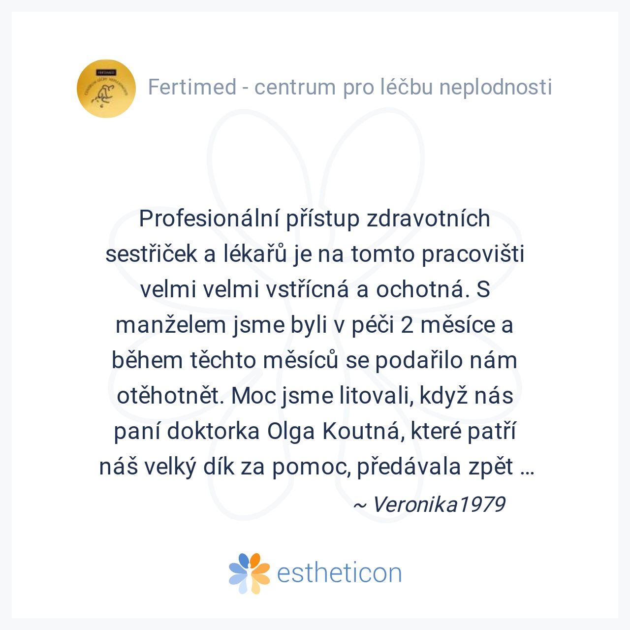 Profesionální přístup zdravotních sestřiček a lékařů je na tomto pracovišti velmi velmi vstřícná a ochotná. S manželem jsme byli v péči 2 měsíce a během těchto měsíců se podařilo nám otěhotnět. Moc jsme litovali, když ná... Více