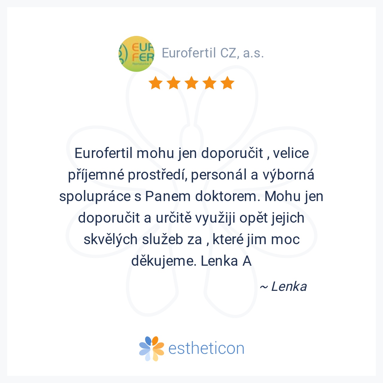Eurofertil mohu jen doporučit , velice příjemné prostředí, personál a výborná spolupráce s Panem doktorem. Mohu jen doporučit a určitě využiji opět jejich skvělých služeb za , které jim moc děkujeme. Lenka A
