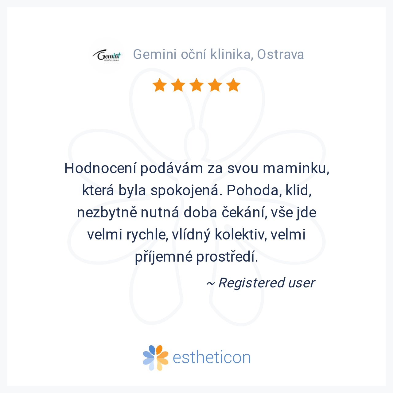 Soukromá oční klinika Gemini oční centrum rozvíjí dlouholetou tradici oční chirurgie. Naším cílem je nejvyšší možná kvalita vašeho vidění. Zdravotní péče je výsledkem spolupráce a osobního přístupu týmu zdravotníků, vedeného renomovanými lékaři a pracujícího se špičkovou technikou.
