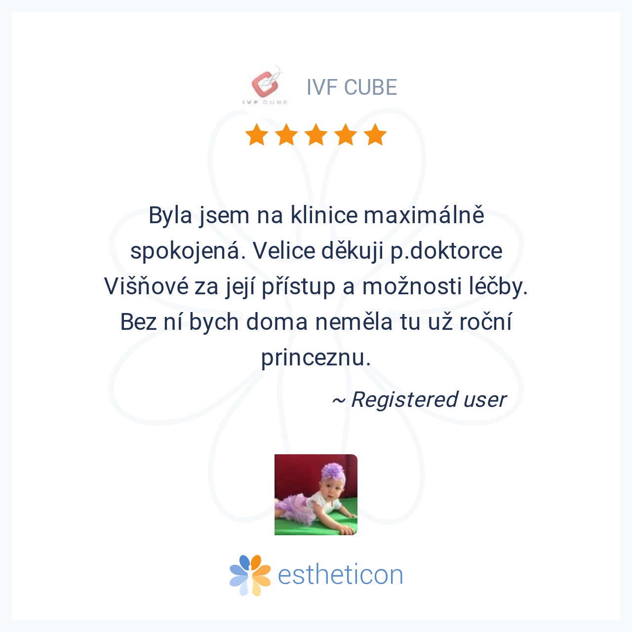 Svou velikostí se IVF CUBE řadí mezi menší pražské kliniky. Díky tomu naše pacienty známe a můžeme ke každému z nich přistupovat individuálně a s osobním přístupem. Náš vstřícný a ochotný personál vám při jakýchkoliv pochybnostech rád poradí a pomůže.
