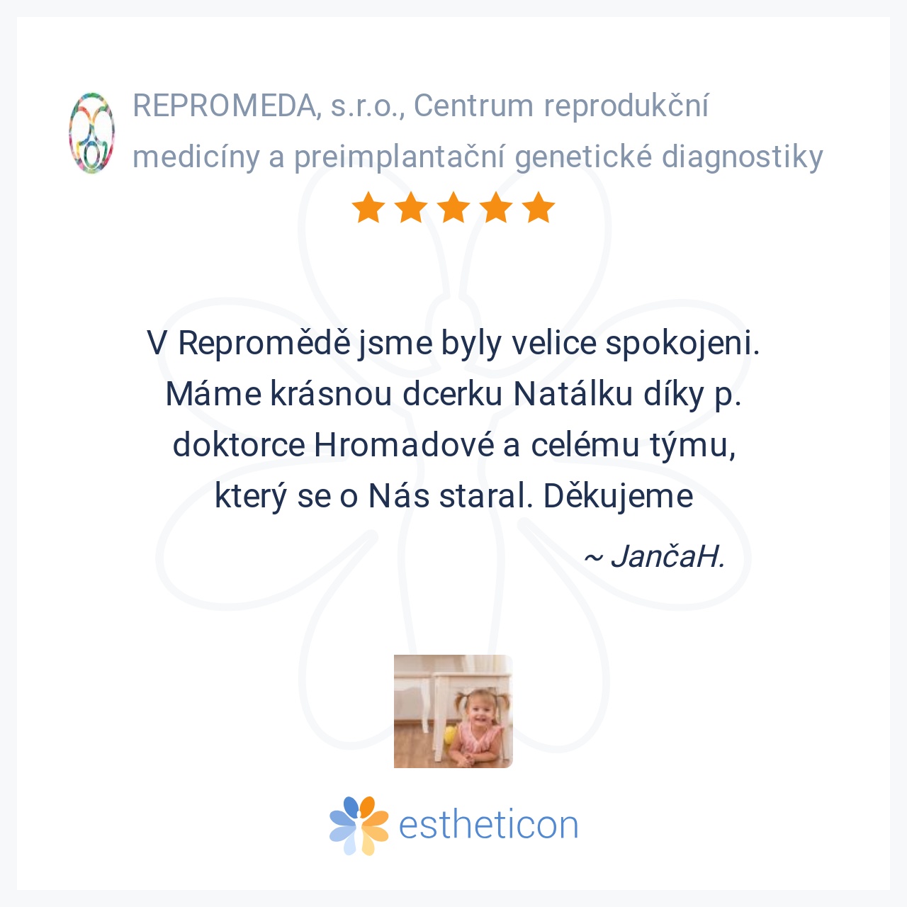 V Repromědě jsme byly velice spokojeni. Máme krásnou dcerku Natálku díky p. doktorce Hromadové a celému týmu, který se o Nás staral. Děkujeme