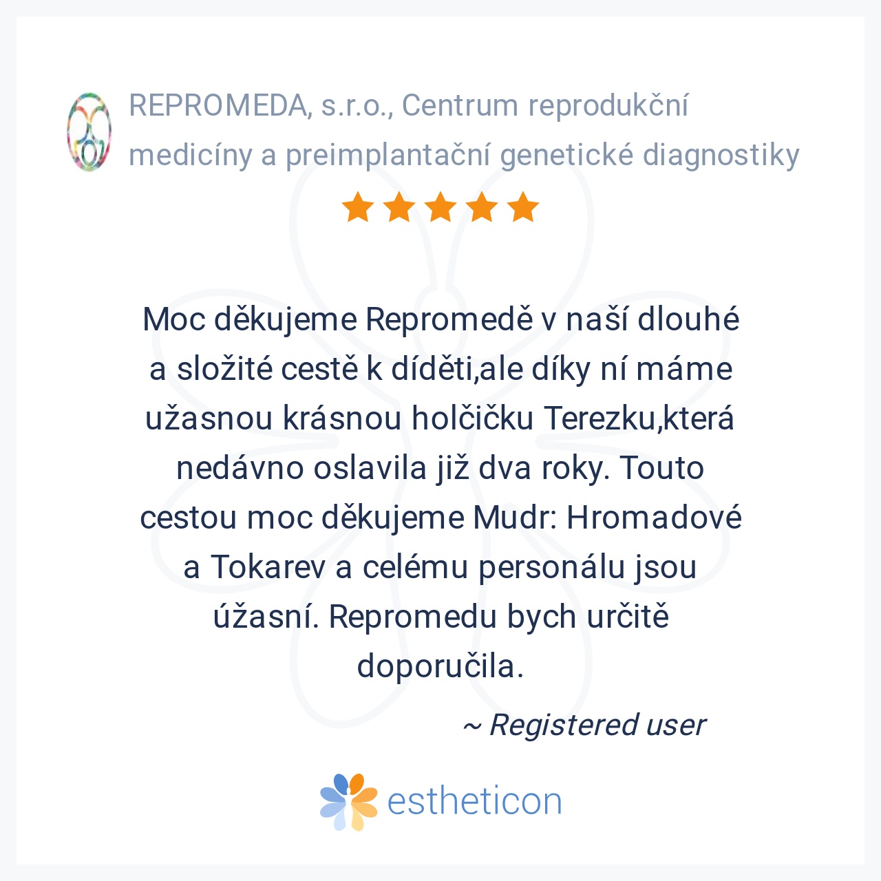 Moc děkujeme Repromedě v naší dlouhé a složité cestě k díděti,ale díky ní máme užasnou krásnou holčičku Terezku,která nedávno oslavila již dva roky. Touto cestou moc děkujeme Mudr: Hromadové a Tokarev a celému personálu ... Více