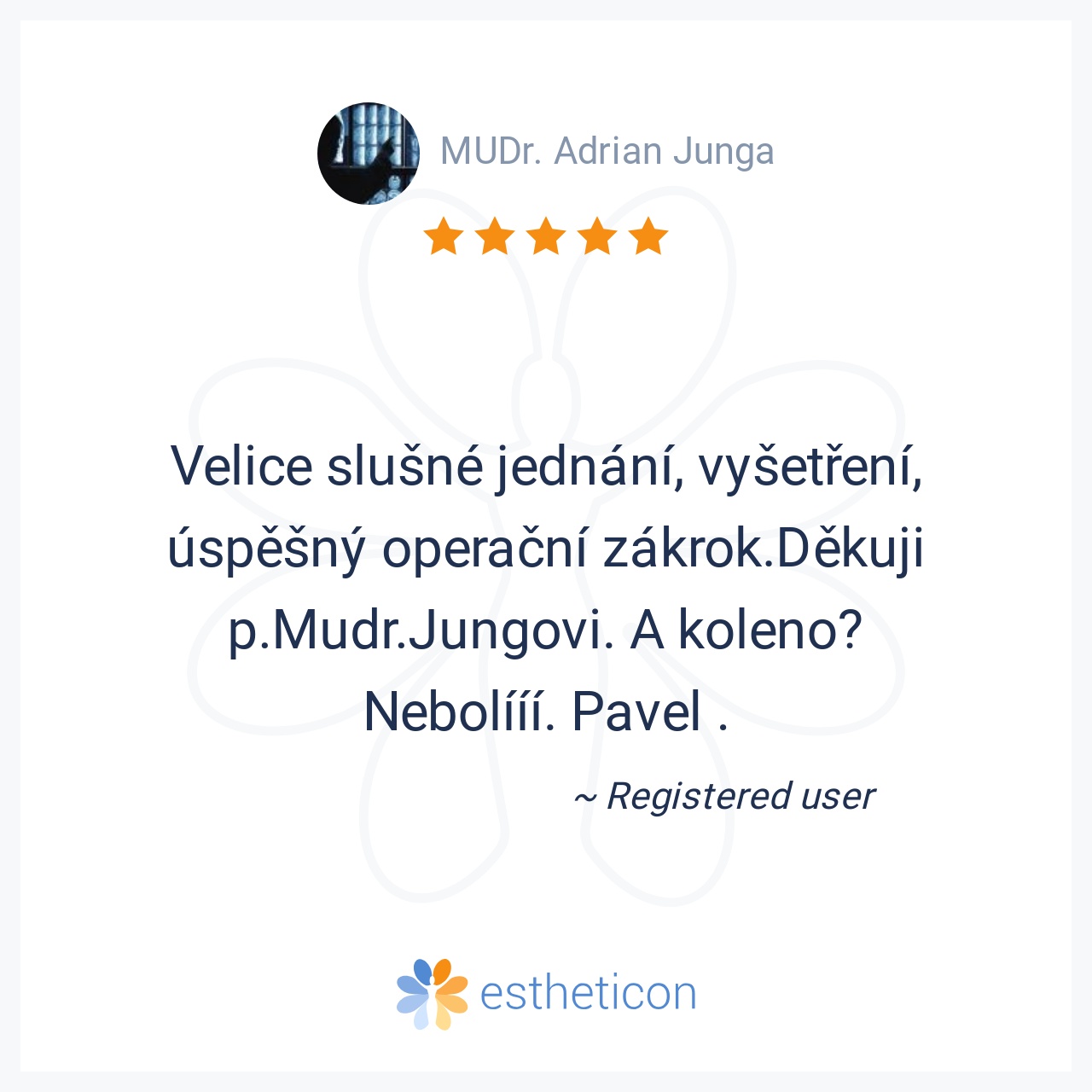 Velice slušné jednání, vyšetření, úspěšný operační zákrok.Děkuji p.Mudr.Jungovi. A koleno? Nebolííí. Pavel .