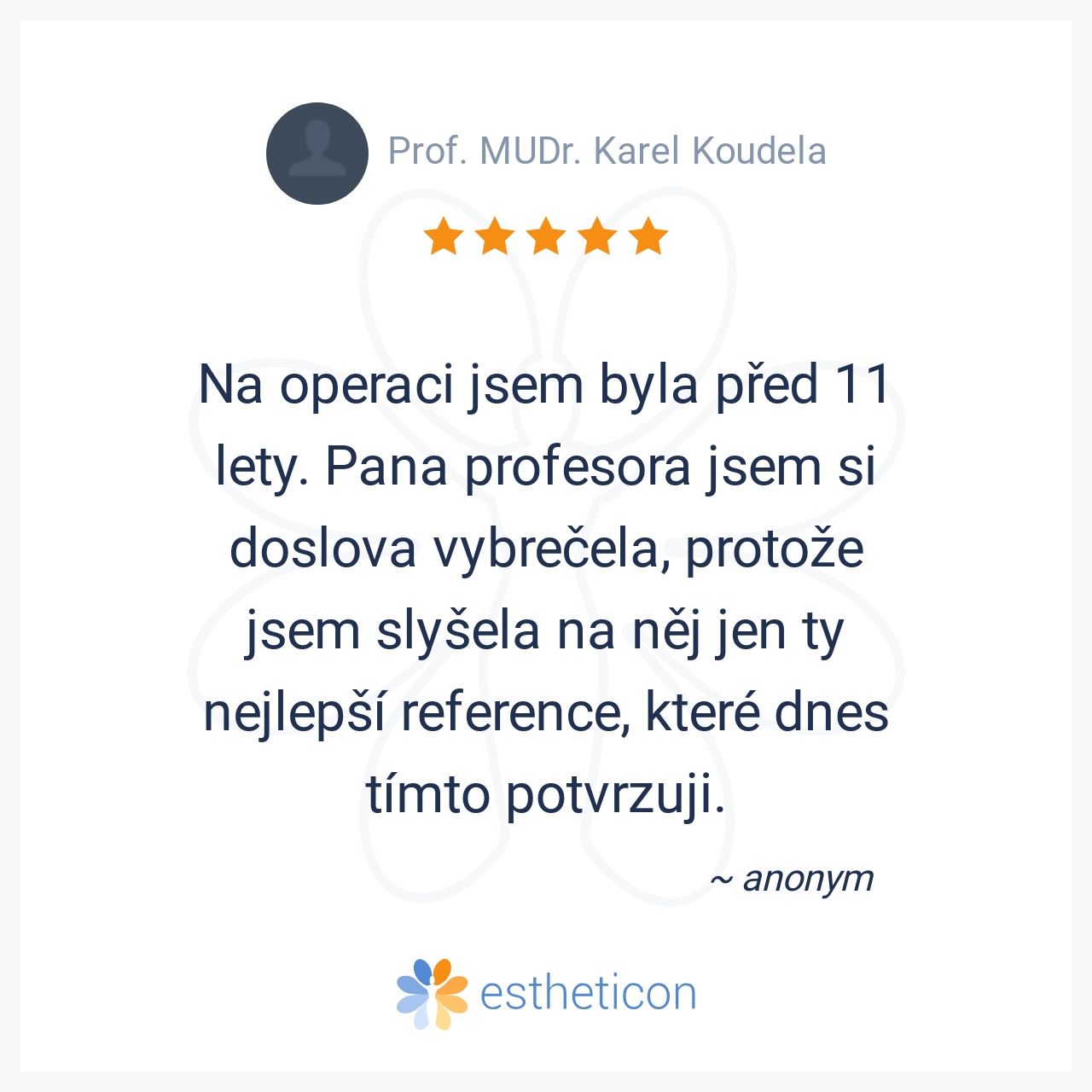 Ošetřoval Vás Prof. MUDr. Karel Koudela a máte osobní zkušenost se zákrokem v této ordinaci? Vložte recenzi, pomozte ostatním se rozhodnout.