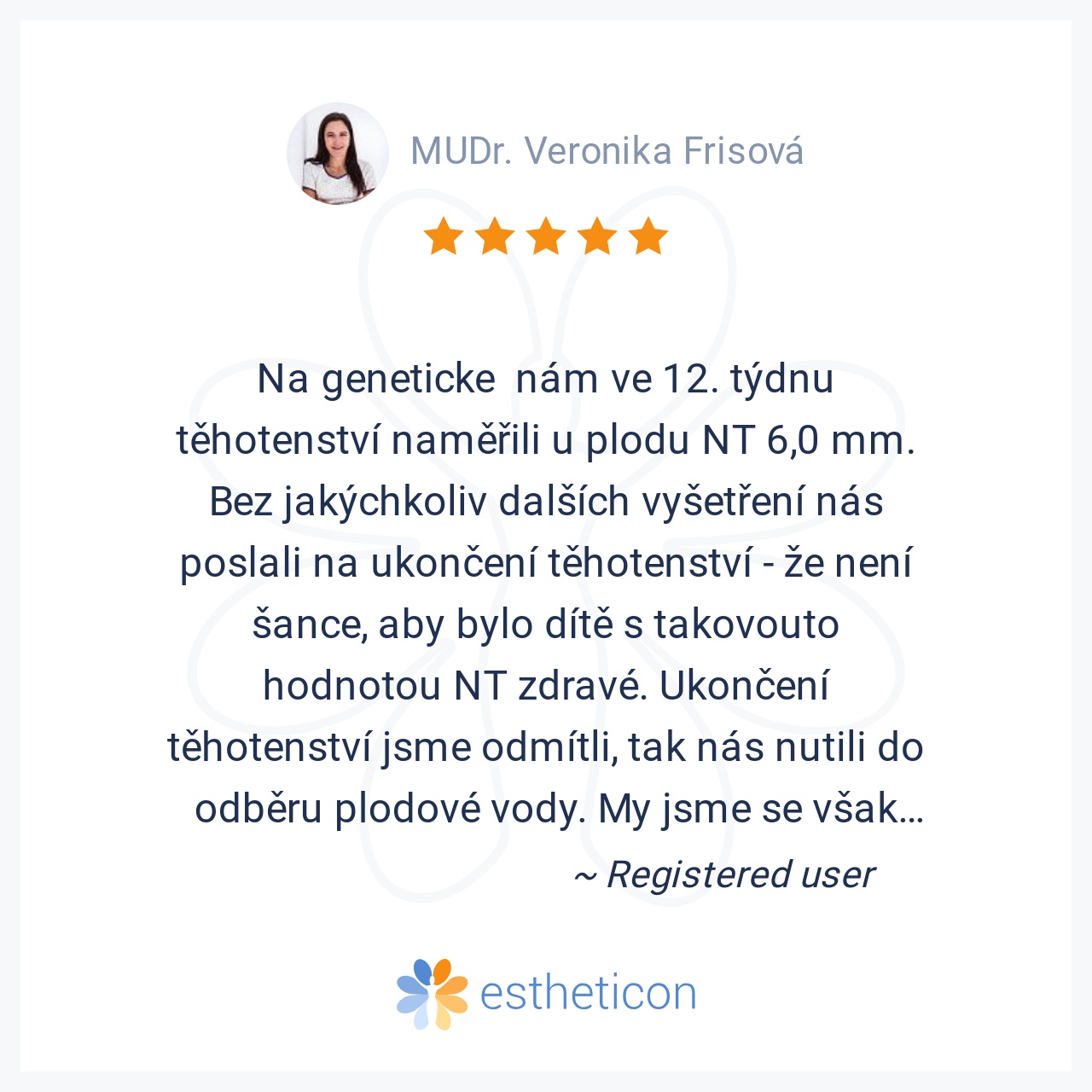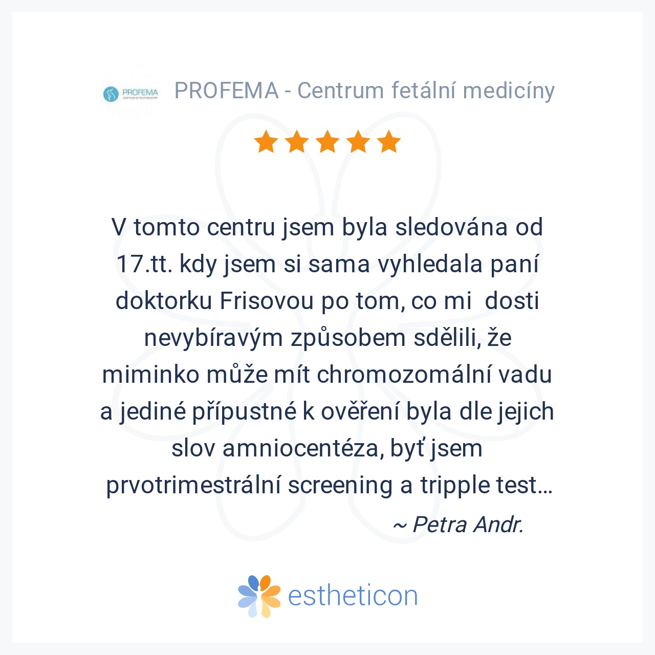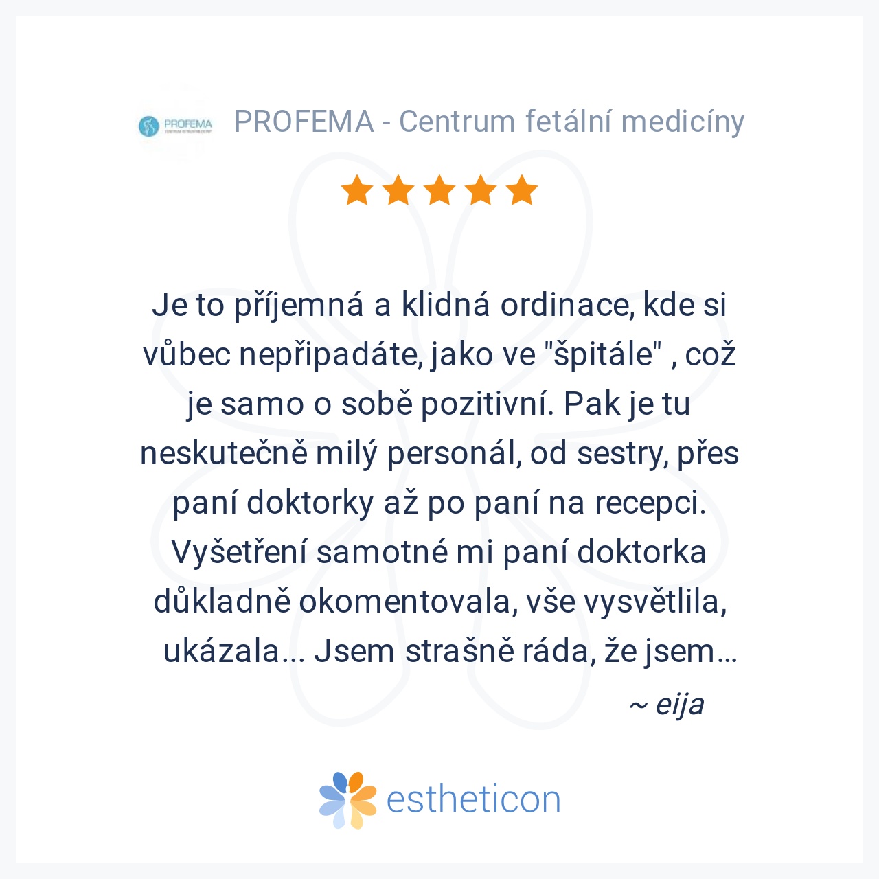 Vysoká úroveň odborné péče je u nás zaručena trvalou mezinárodní spoluprácí s Fetal Medicine Foundation v Londýně PROFEMA klade zároveň velký důraz na kvalitu i po stránce komunikační. Zastáváme názor, že žena by měla být vždy srozumitelně seznámena s výsledkem vyšetření.