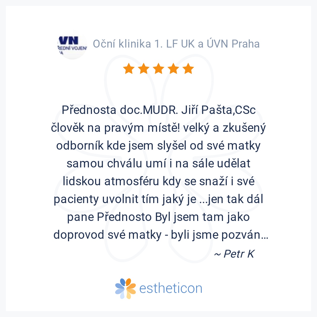 Přednosta doc.MUDR. Jiří Pašta,CSc člověk na pravým místě! velký a zkušený odborník kde jsem slyšel od své matky samou chválu umí i na sále udělat lidskou atmosféru kdy se snaží i své pacienty uvolnit tím jaký je ...jen ... Více
