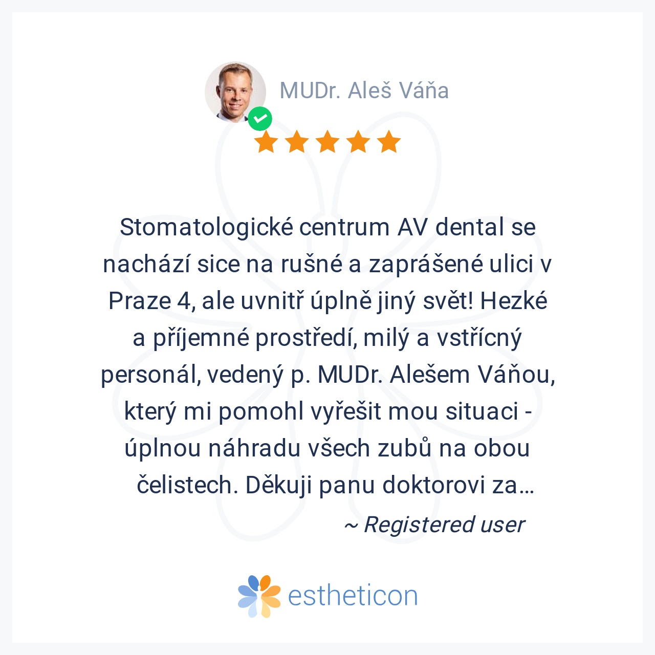 Muj dlouholety amsterodamsky zubar neposkytoval zavadeni implantátu. Proto jsem se rozhodl pro tento ukon najit nekoho pobliz mého pražského bydliste, zhruba před 3mi lety. Nejblize byl MUDr. Ales Vana. Jiz při me 1. nav... Více