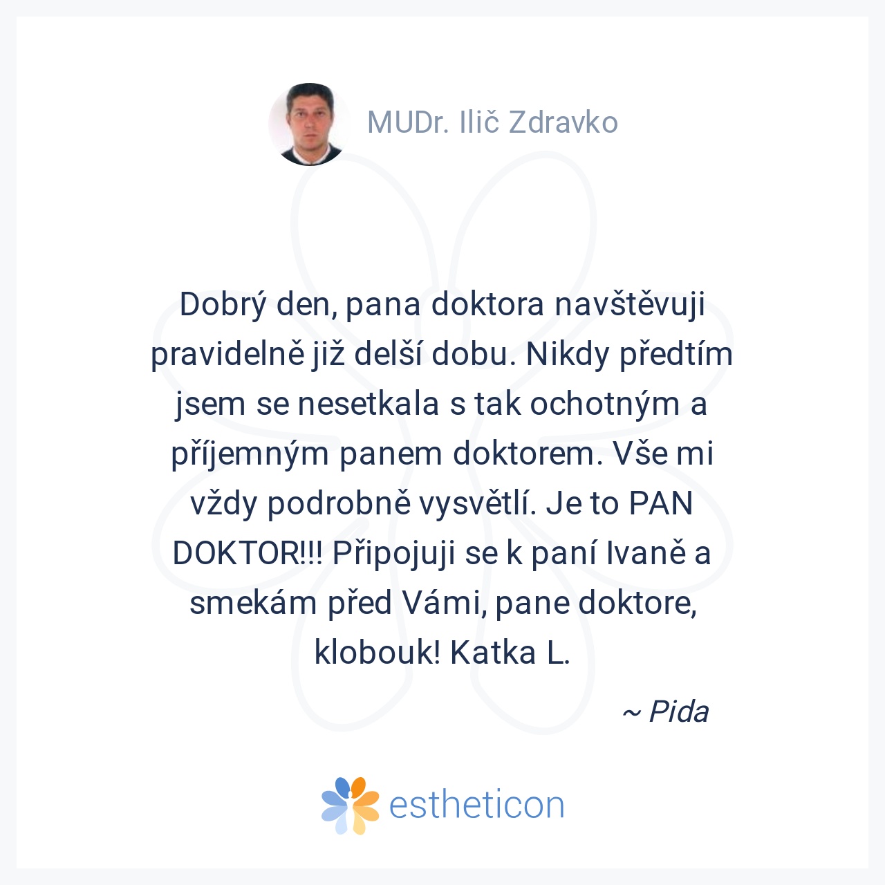 Dobrý den, pana doktora navštěvuji pravidelně již delší dobu. Nikdy předtím jsem se nesetkala s tak ochotným a příjemným panem doktorem. Vše mi vždy podrobně vysvětlí. Je to PAN DOKTOR!!! Připojuji se k paní Ivaně a sm... Více