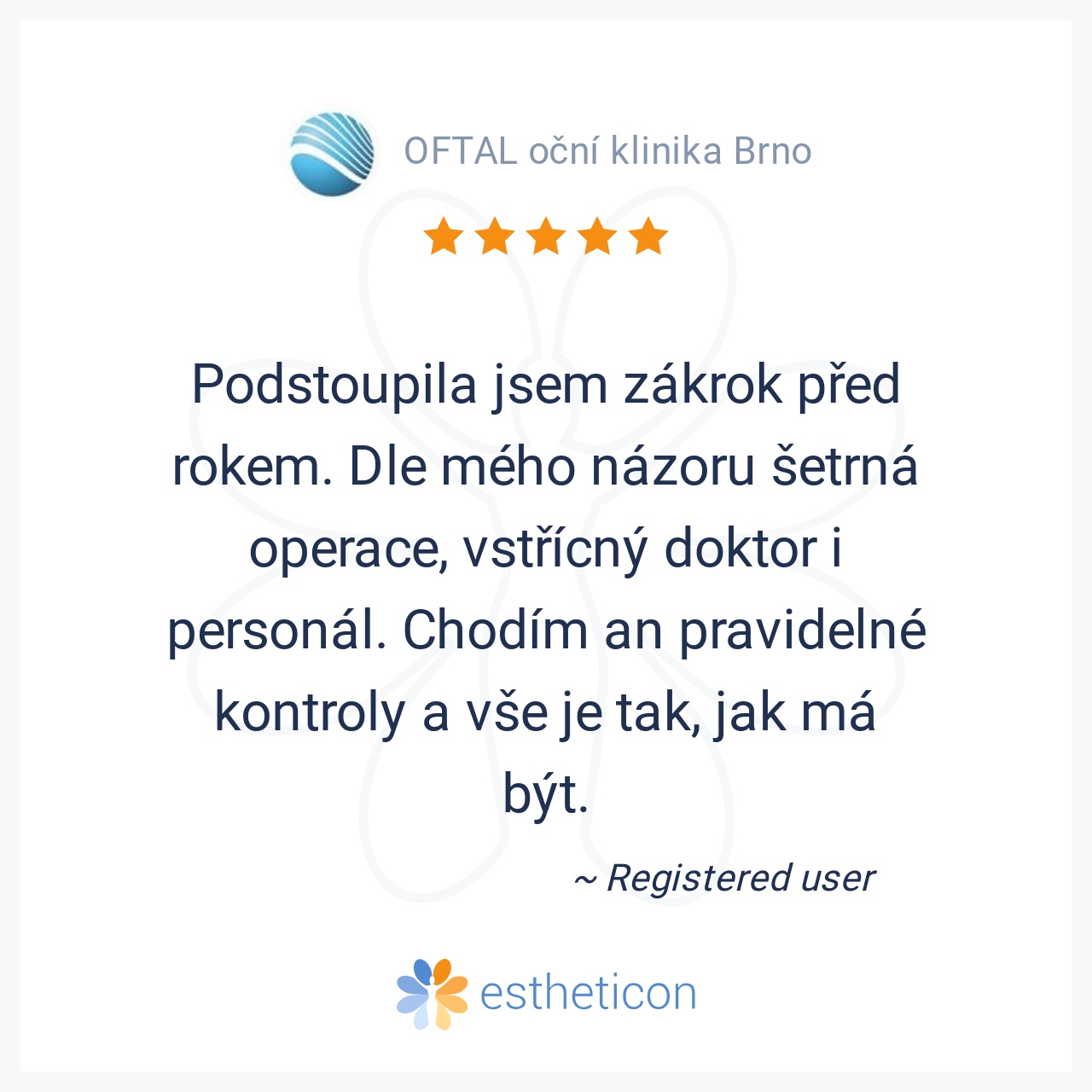 Rychlé objednáni. Kvalitni vyšetřeni zraku před zakrokem a možnost vybrat si idealní řešeni pro mne. Zákrok proběhl v pořadku a již druhý den jsem viděla velice ostře. Ochotný personál a velice kvalitní lékaři.