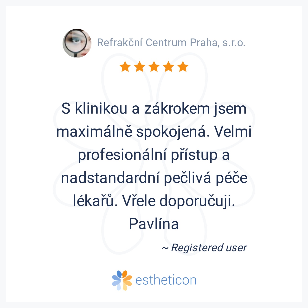 S klinikou a zákrokem jsem maximálně spokojená. Velmi profesionální přístup a nadstandardní pečlivá péče lékařů. Vřele doporučuji. Pavlína