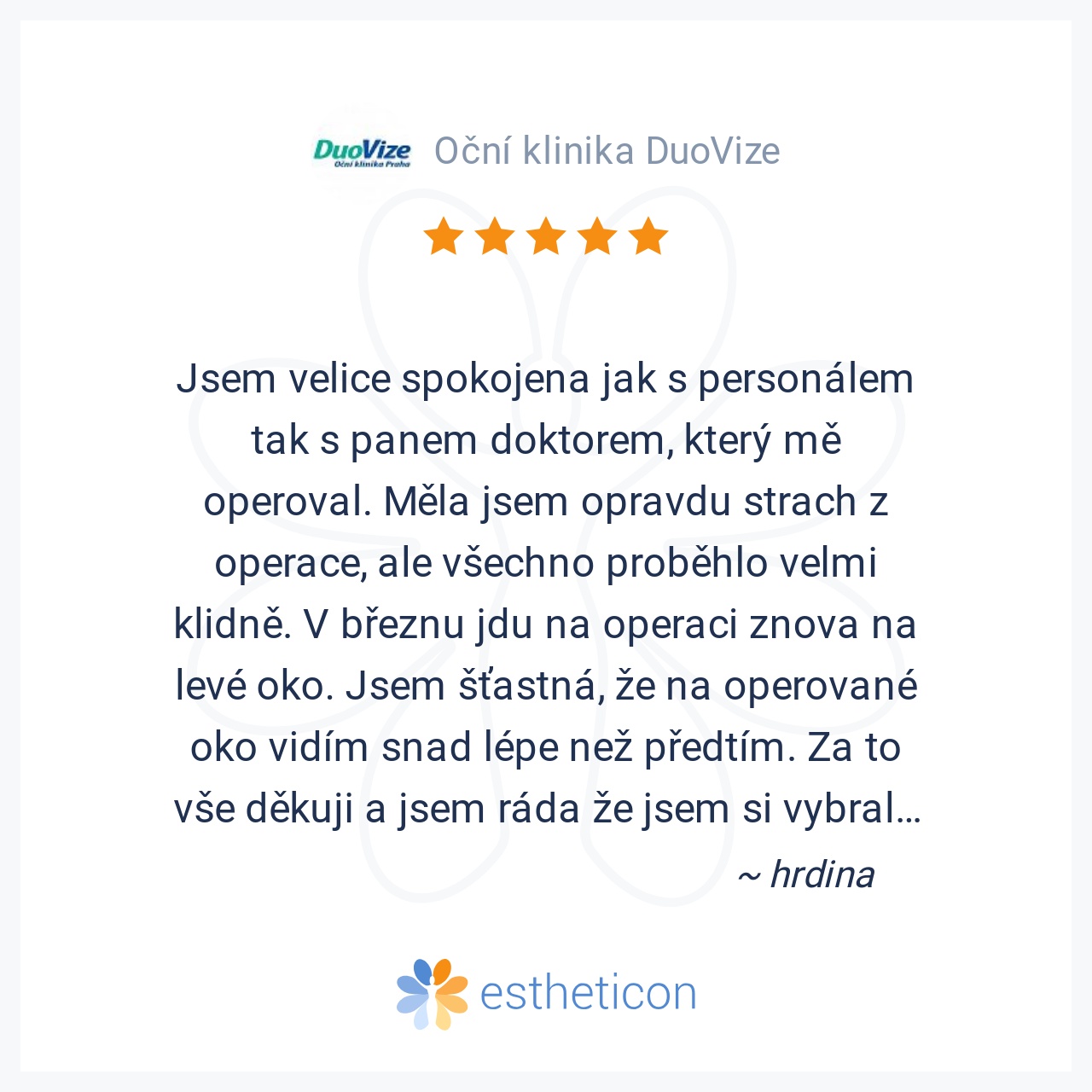 Jsem po operaci velmi spokojeny,dekuji lekarum a sestrickam DuoVize Mohu jen doporucit,