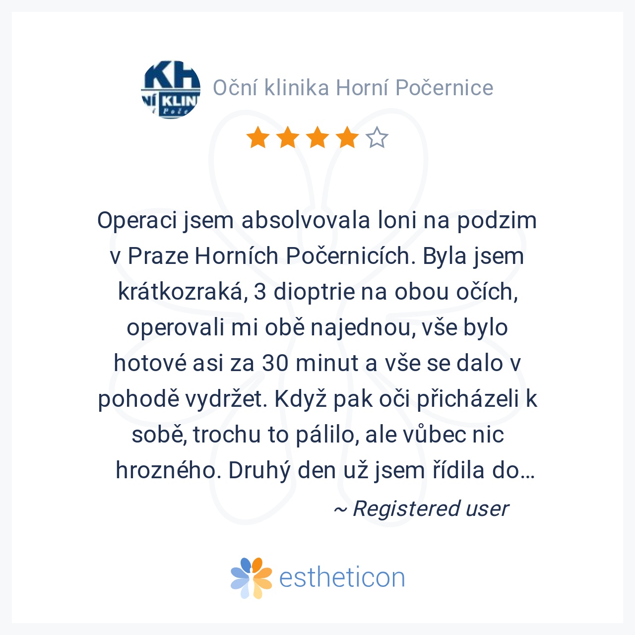 Jsem velice spokojena jak s personálem tak s panem doktorem, který mě operoval. Měla jsem opravdu strach z operace, ale všechno proběhlo velmi klidně. V březnu jdu na operaci znova na levé oko. Jsem šťastná, že na operov... Více