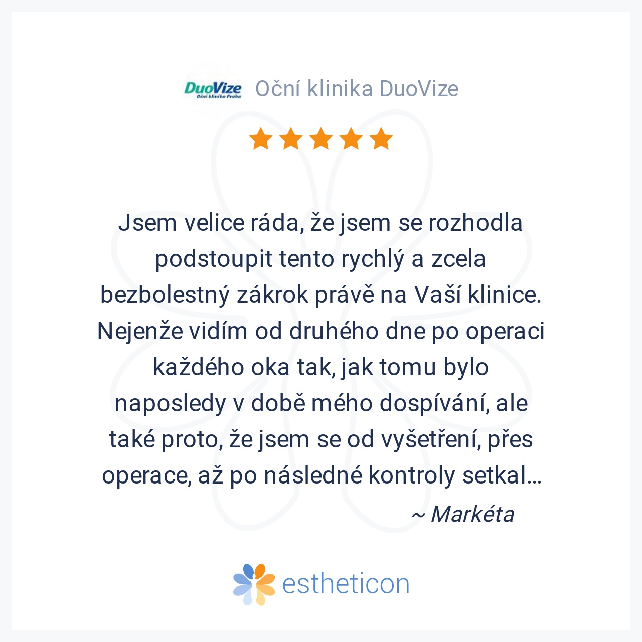 Jsem velice ráda, že jsem se rozhodla podstoupit tento rychlý a zcela bezbolestný zákrok právě na Vaší klinice. Nejenže vidím od druhého dne po operaci každého oka tak, jak tomu bylo naposledy v době mého dospívání, ale ... Více