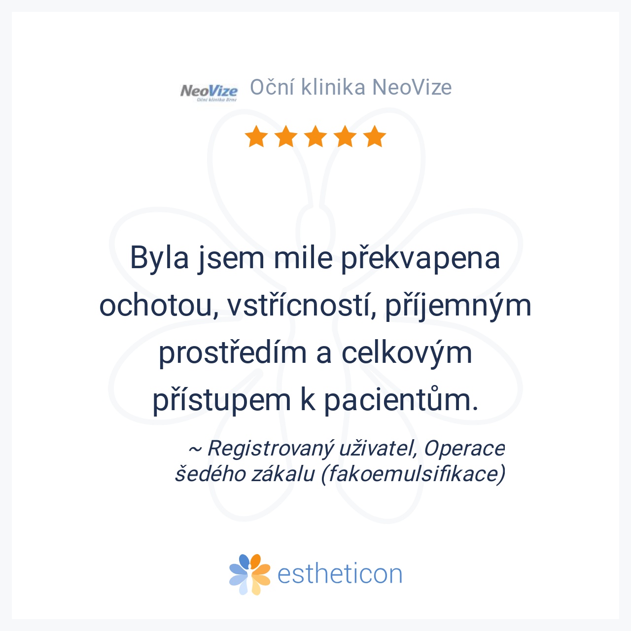 V NeoVizi mě během pár minut zbavili mé krátkozrakosti. Přístup personálu je velice profesionální a zároveň lidský. Vše proběhlo bez komplikací a ve velice příjemném duchu. Jsem opravdu ráda, že jsem se rozhodla pro oper... Více