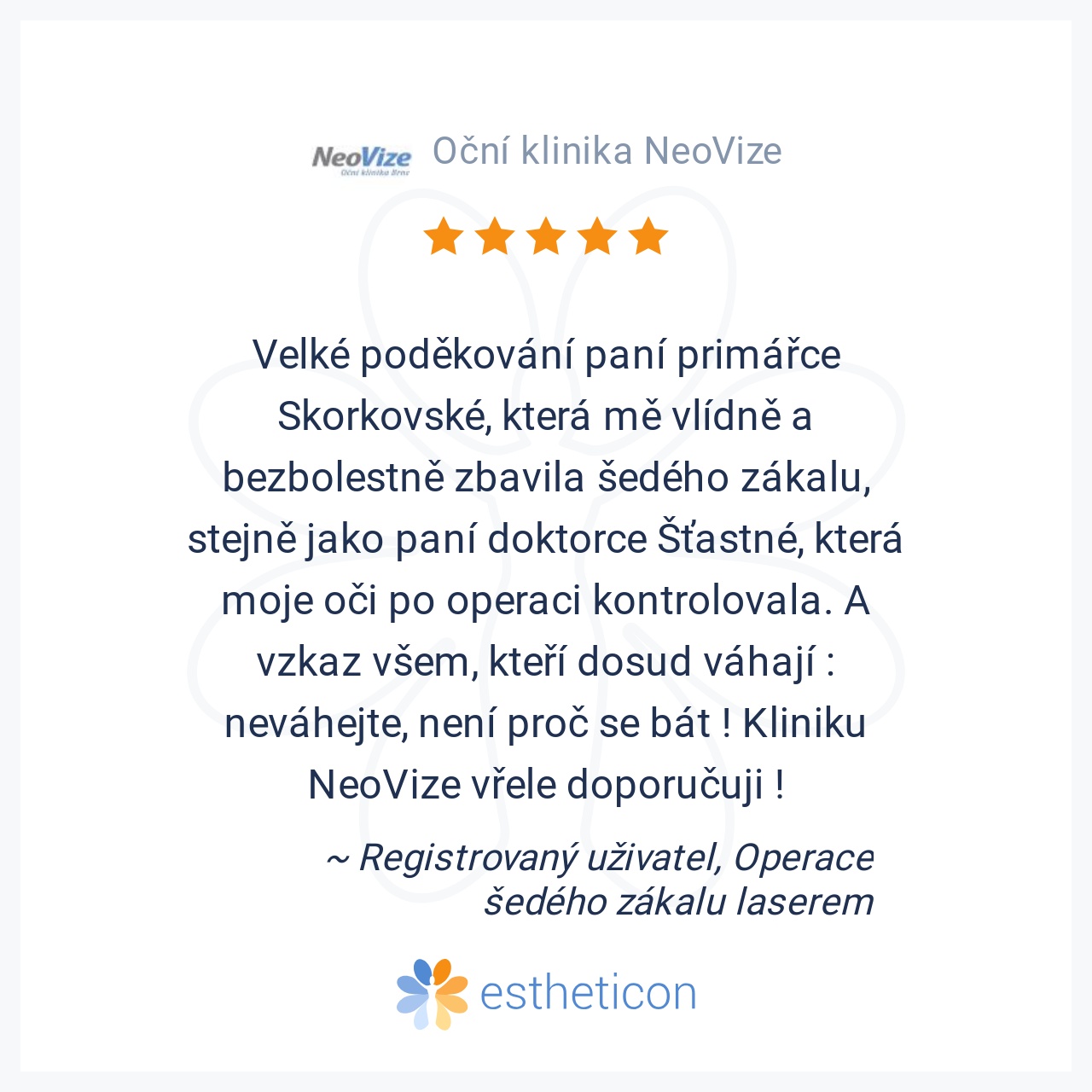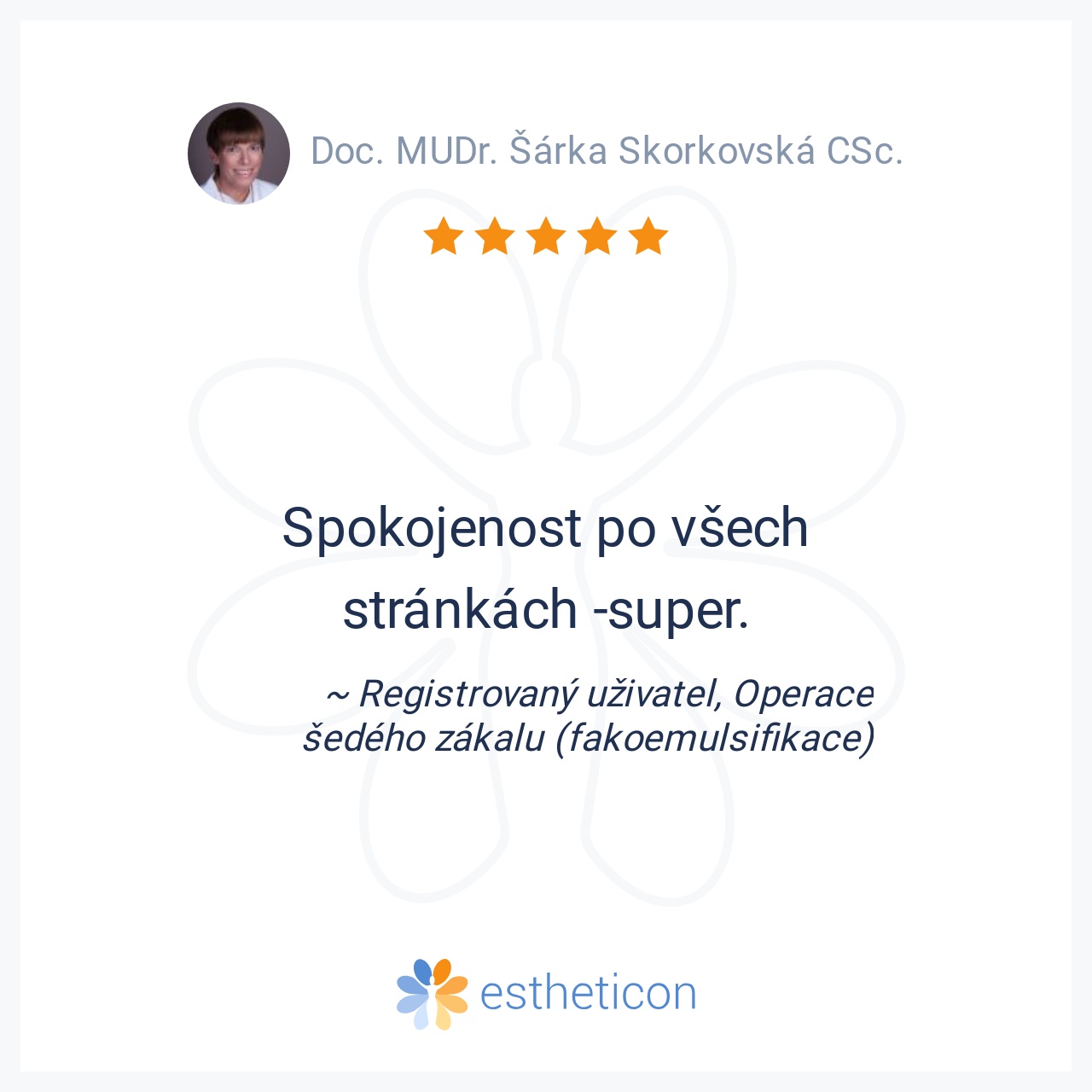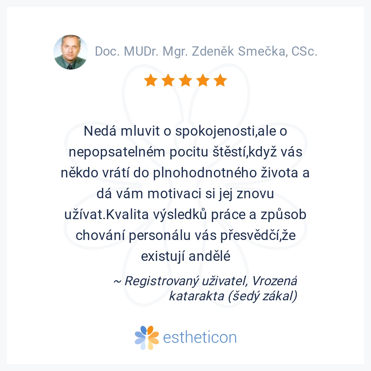 Velká profesionalita, lidský přístup a vše provedeno v krátké době. Jsem 2 měsíce po operaci a vidím velmi dobře. Děkuji Milada, Kuřim.