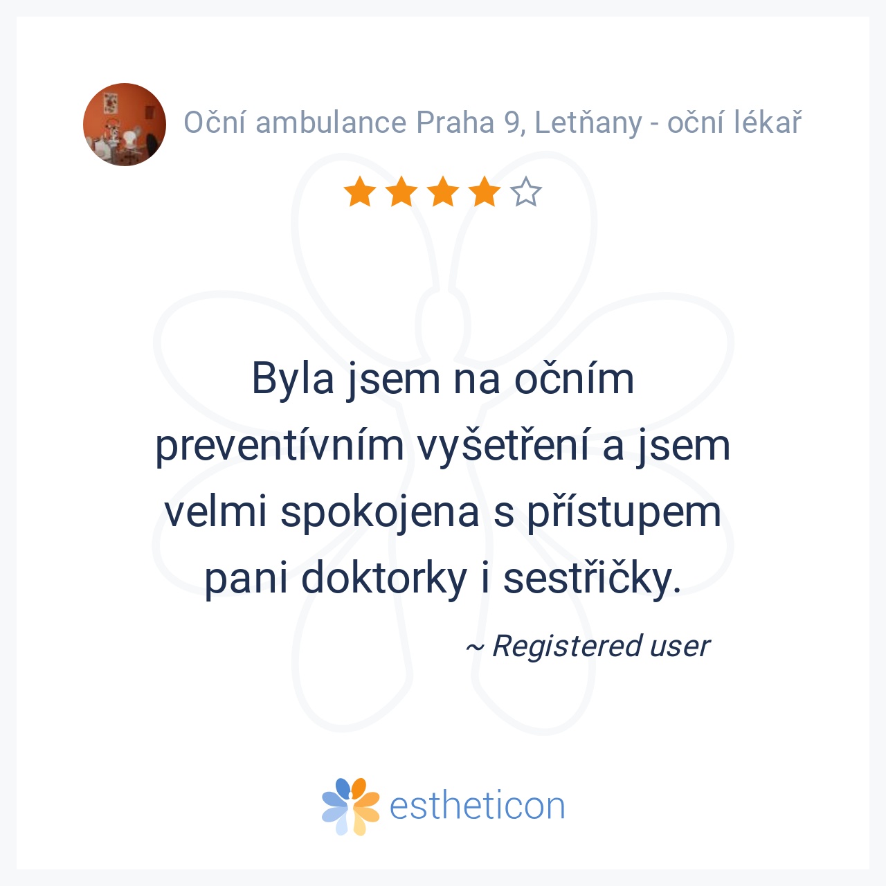 Byla jsem na očním preventívním vyšetření a jsem velmi spokojena s přístupem pani doktorky i sestřičky.
