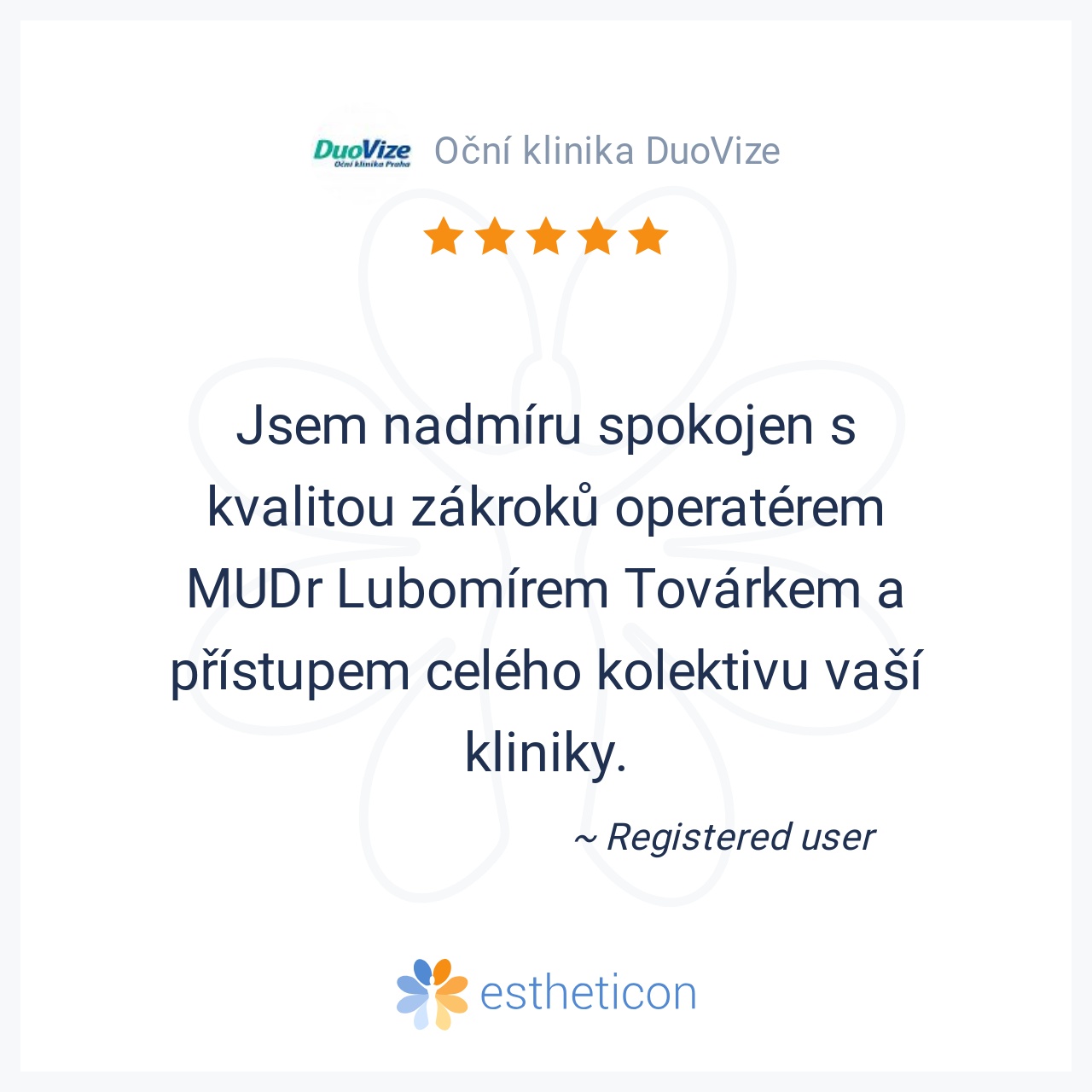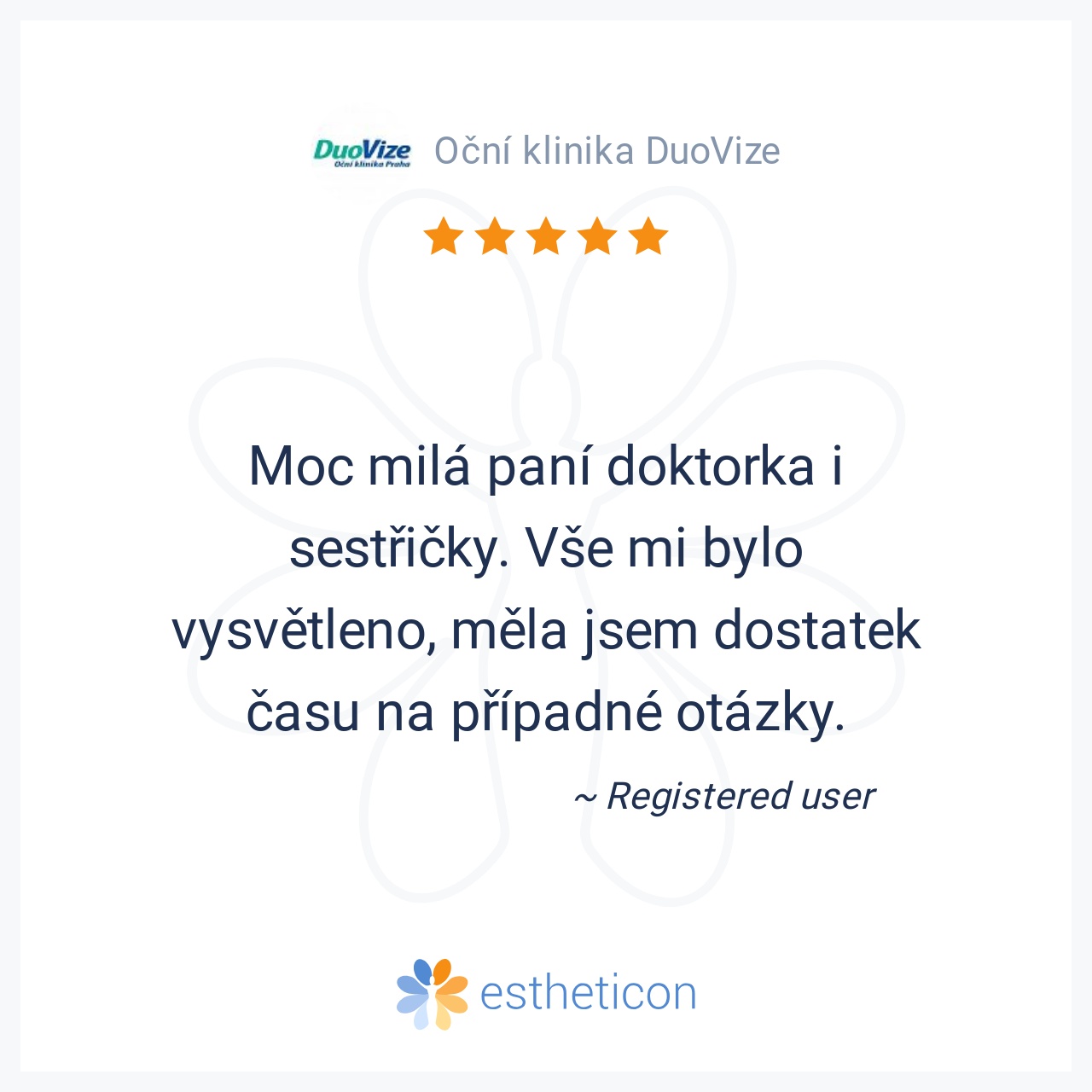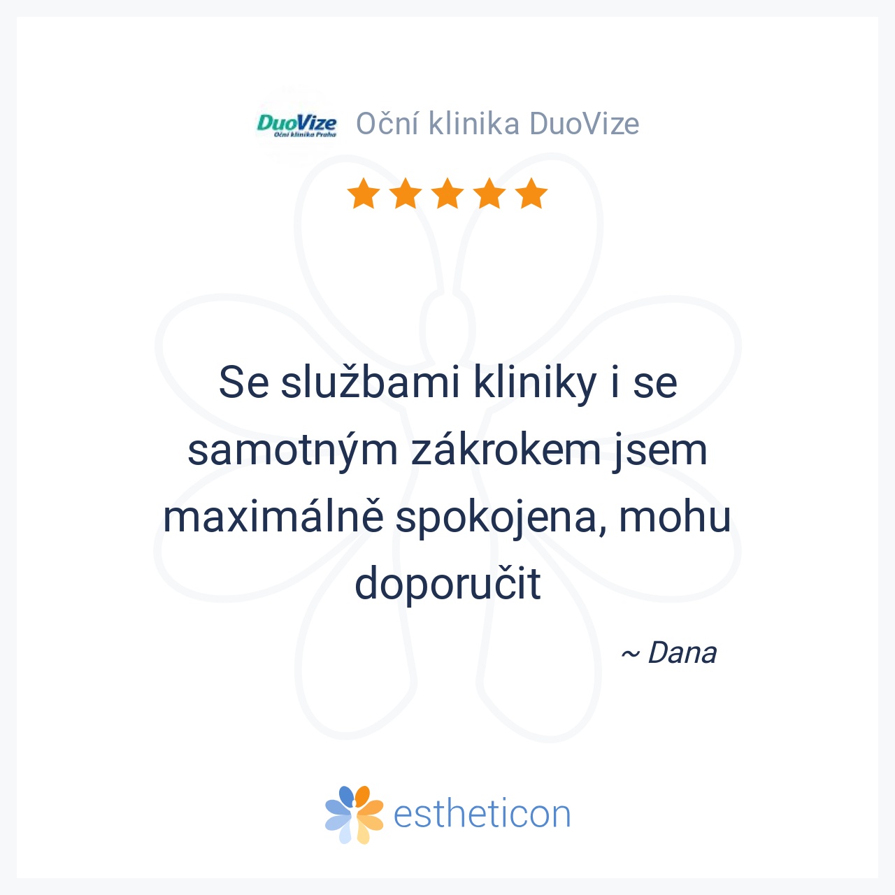 Velké poděkování celému týmu DuoVize, obzvláště paní doktorce Janě Mikšovské za profesionální výkon, lidský přístup a celkově příjemné prostředí. Všem vřele tuto kliniku doporučuji.