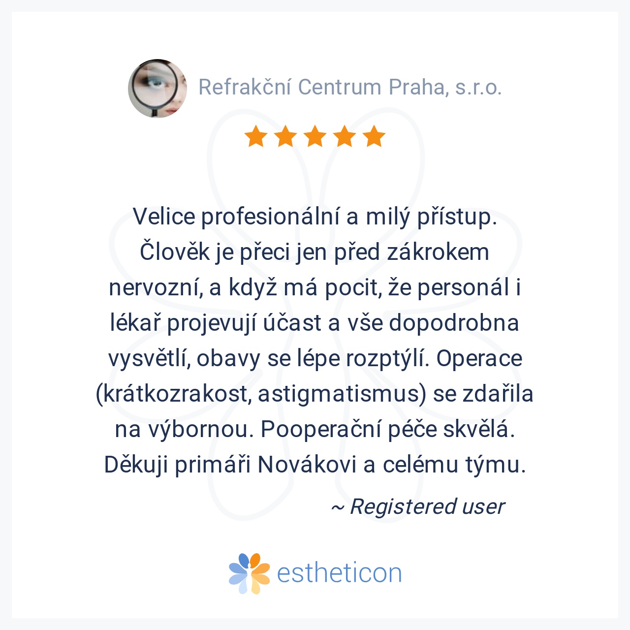 Velice profesionální a milý přístup. Člověk je přeci jen před zákrokem nervozní, a když má pocit, že personál i lékař projevují účast a vše dopodrobna vysvětlí, obavy se lépe rozptýlí. Operace (krátkozrakost, astigmatism... Více