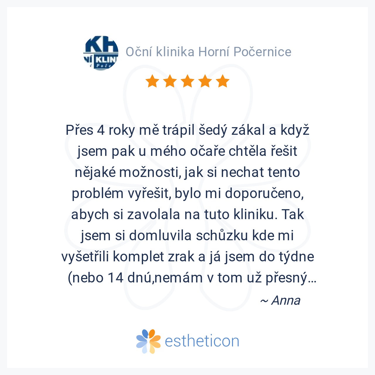 Přes 4 roky mě trápil šedý zákal a když jsem pak u mého očaře chtěla řešit nějaké možnosti, jak si nechat tento problém vyřešit, bylo mi doporučeno, abych si zavolala na tuto kliniku. Tak jsem si domluvila schůzku kde mi... Více