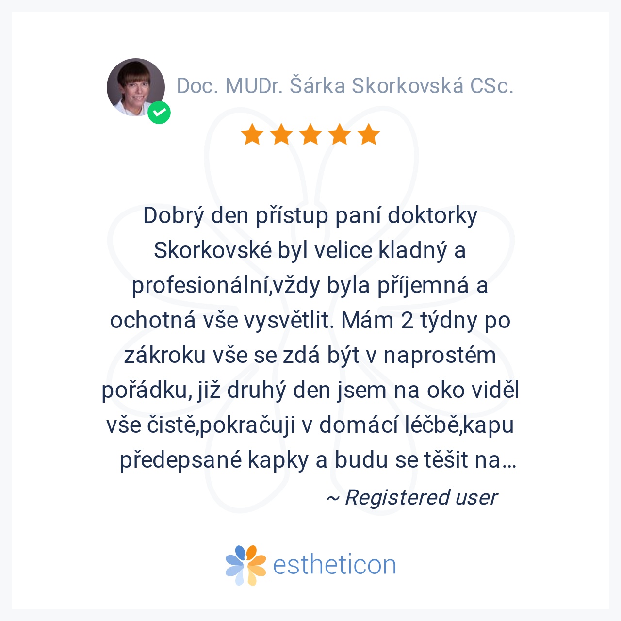 Dobrý den přístup paní doktorky Skorkovské byl velice kladný a profesionální,vždy byla příjemná a ochotná vše vysvětlit. Mám 2 týdny po zákroku vše se zdá být v naprostém pořádku, již druhý den jsem na oko viděl vše čis... Více