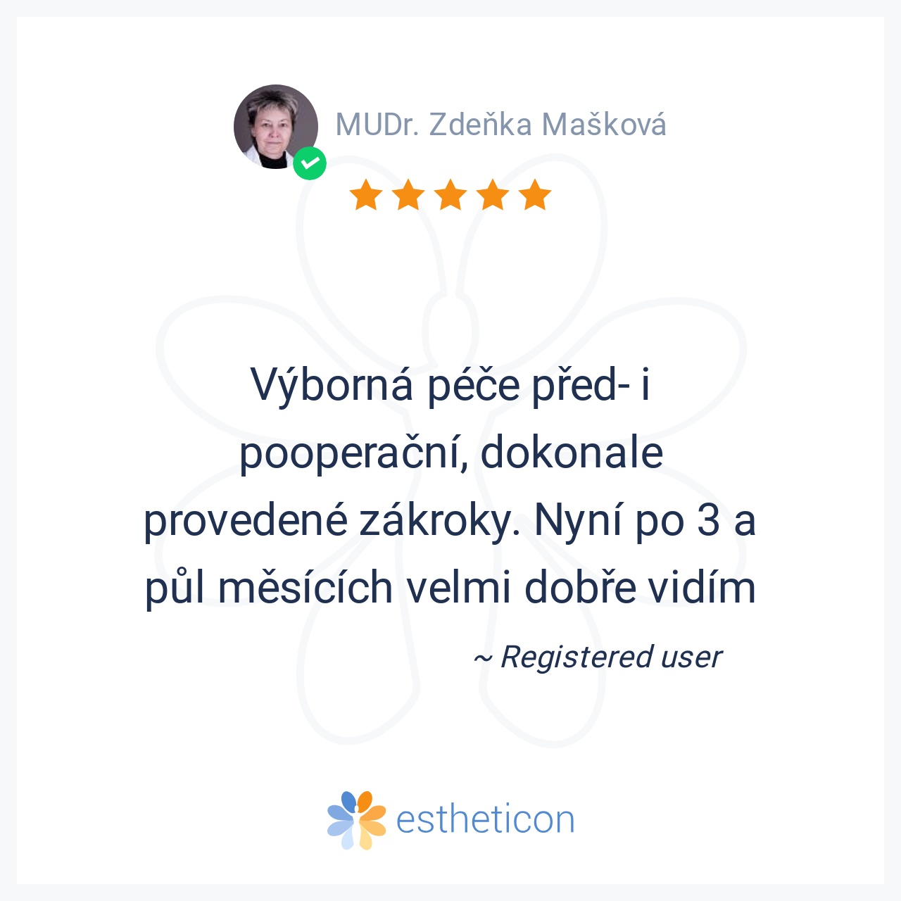Výborná péče před- i pooperační, dokonale provedené zákroky. Nyní po 3 a půl měsících velmi dobře vidím