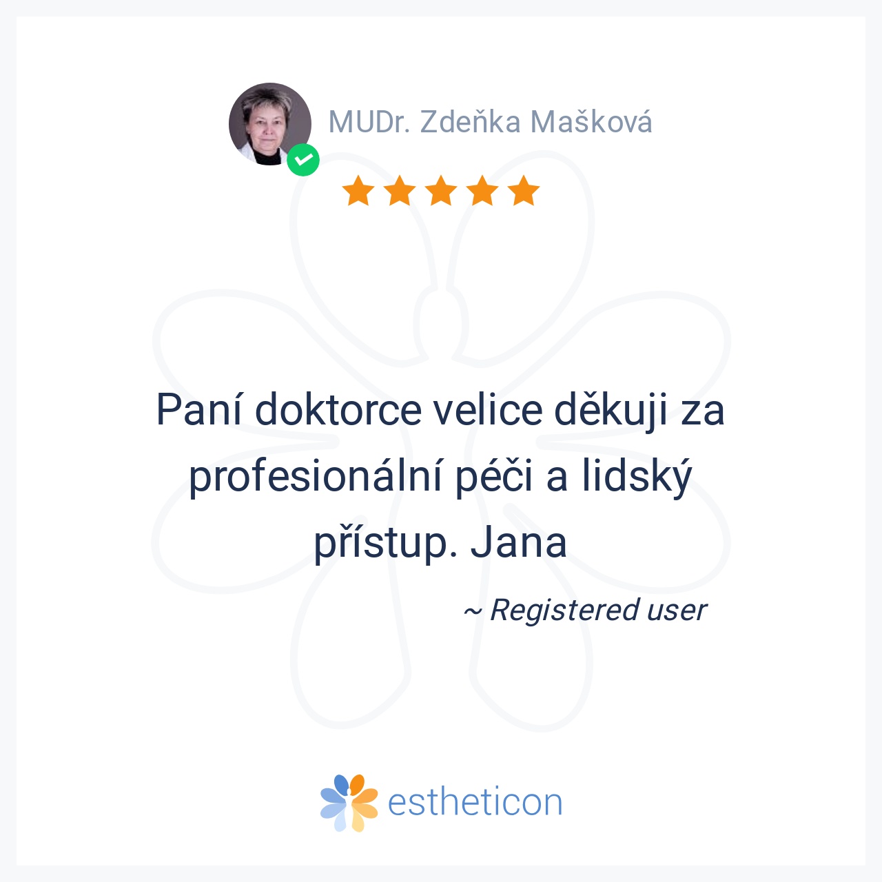 Paní doktorce velice děkuji za profesionální péči a lidský přístup. Jana
