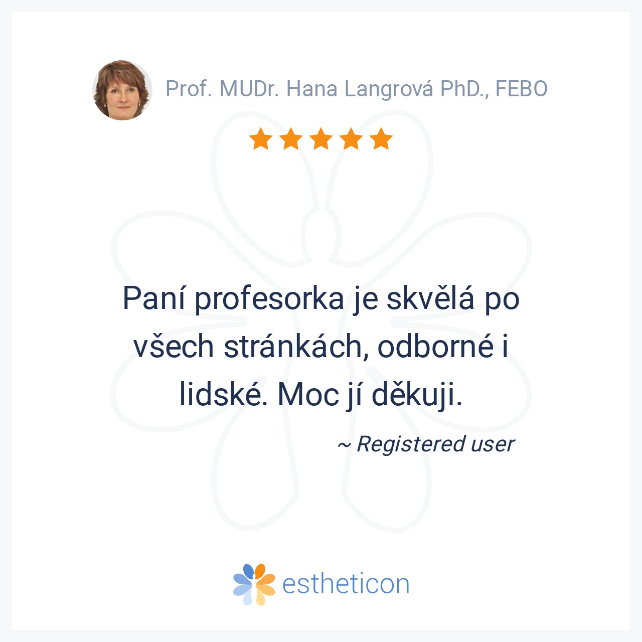 Paní profesorka je skvělá po všech stránkách, odborné i lidské. Moc jí děkuji.