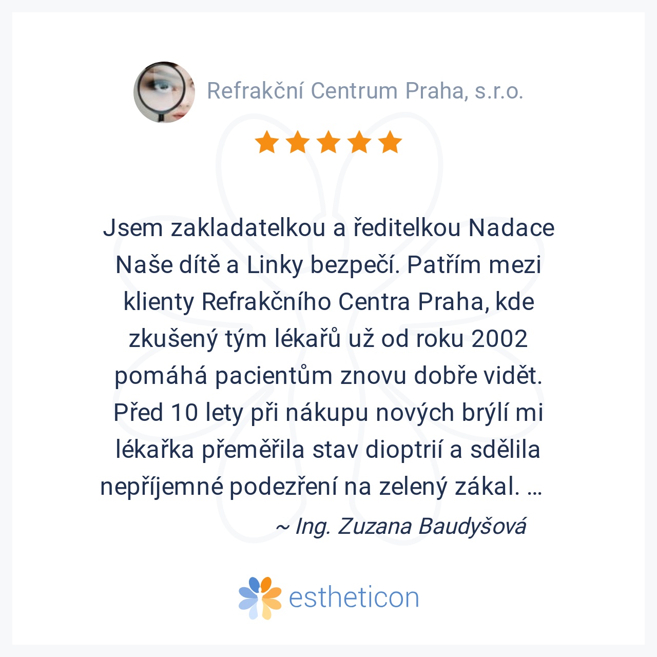 Jsem zakladatelkou a ředitelkou Nadace Naše dítě a Linky bezpečí. Patřím mezi klienty Refrakčního Centra Praha, kde zkušený tým lékařů už od roku 2002 pomáhá pacientům znovu dobře vidět. Před 10 lety při nákupu nových... Více