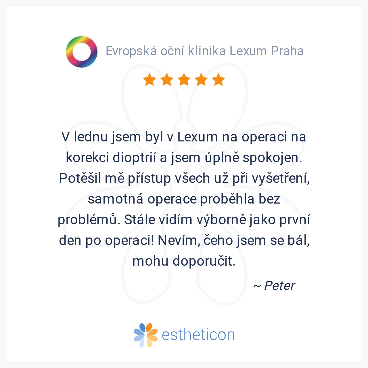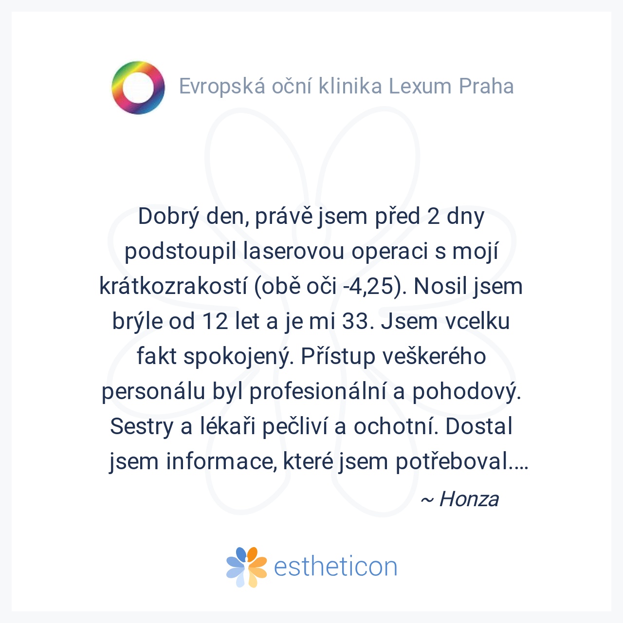 O operaci očí jsem přemýšlel už strašně dlouho, asi tak 10 let, a stále jsem si ověřoval u známých, jak jim to změnilo život. A proč jsem se pro operaci rozhodl? No protože si myslím, že je to zázrak, vrátit někomu zrak ... Více