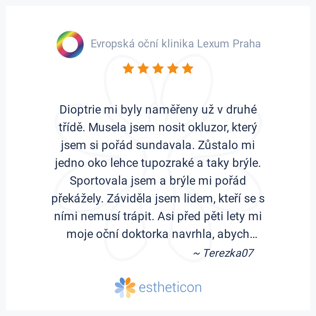 Dioptrie mi byly naměřeny už v druhé třídě. Musela jsem nosit okluzor, který jsem si pořád sundavala. Zůstalo mi jedno oko lehce tupozraké a taky brýle. Sportovala jsem a brýle mi pořád překážely. Záviděla jsem lidem, ... Více