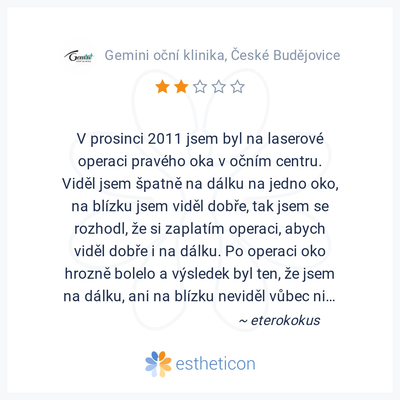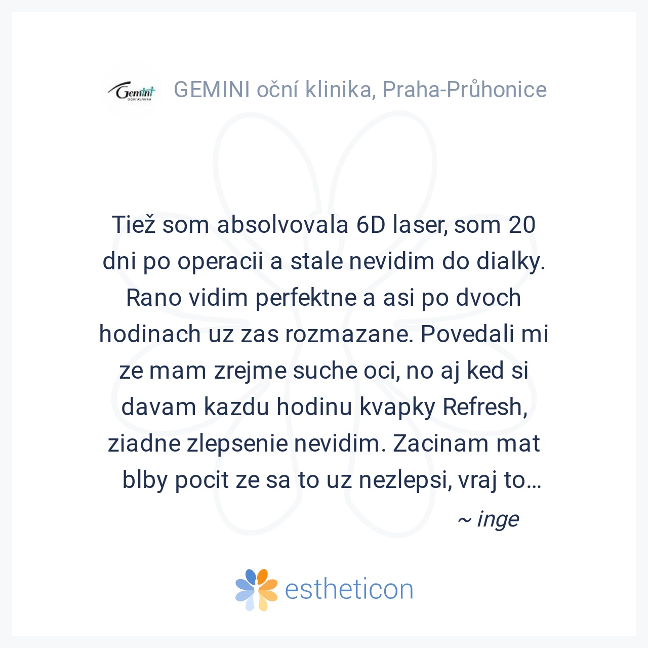 Nechala jsem se operovat v 2012 v ordinaci Gemini v Ceskych Budojovicich.Zakrok je absolutne bezbolestny,jen mozna neprijemny,asi jako navsteva u zubare. Jiz druhy den vidite, trva zhruba 3 tydny,nez se zrak ustaly,ale t... Více