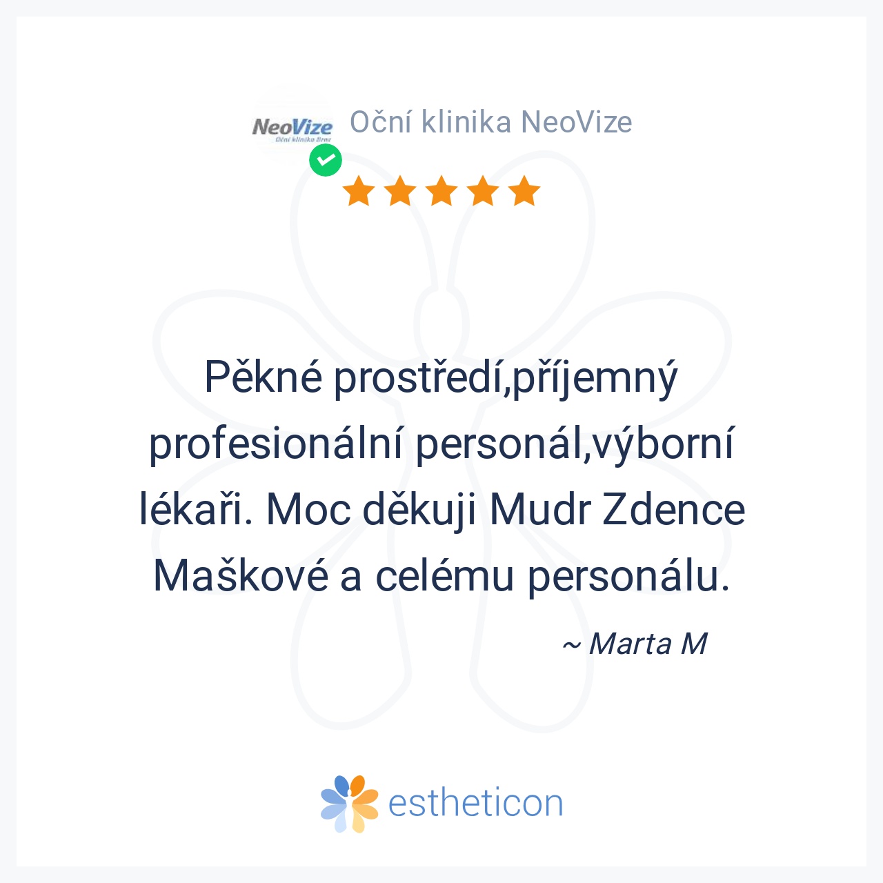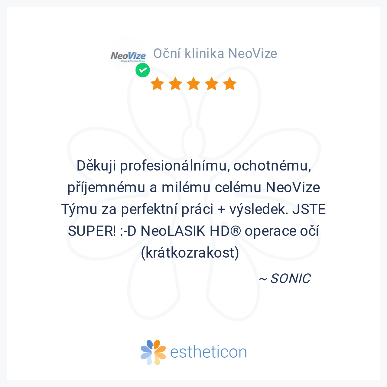 Děkuji profesionálnímu, ochotnému, příjemnému a milému celému NeoVize Týmu za perfektní práci + výsledek. JSTE SUPER! :-D NeoLASIK HD® operace očí (krátkozrakost)