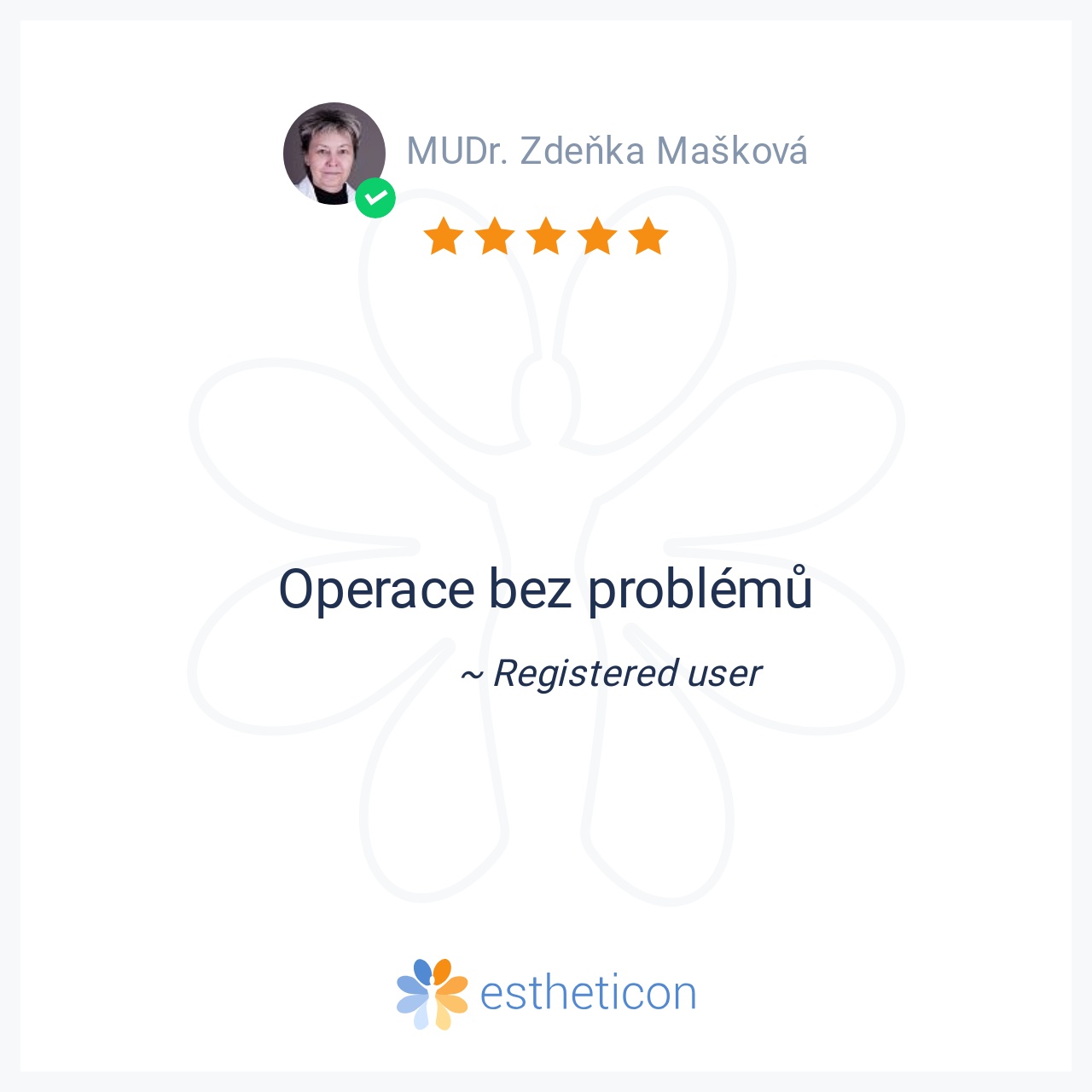 Paní doktorku Maškovou znám více jak 15 let, zákroky a léčbu jsem u ní absolvoval i na dřívějších pracovištích, kde působila. Vždy jsem se setkal s jejím velmi ochotným, profesionálním a vstřícným přístupem. Z těchto dův... Více