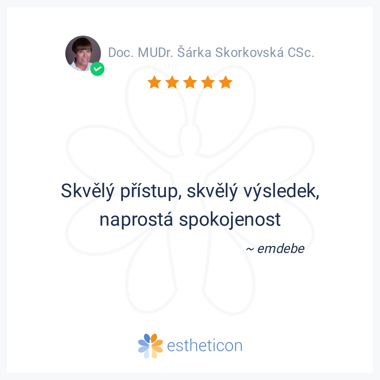 Veliká spokojenost,přístup na vysoce profesionální úrovni. Vřelé díky paní docentce a celému jejímu týmu.