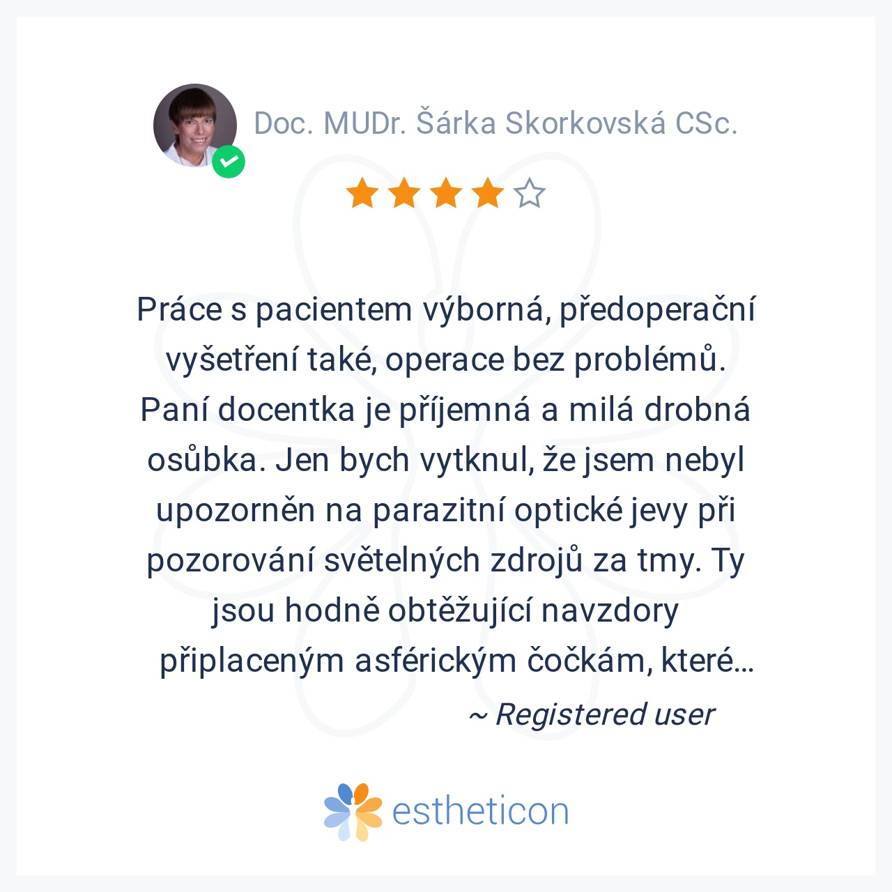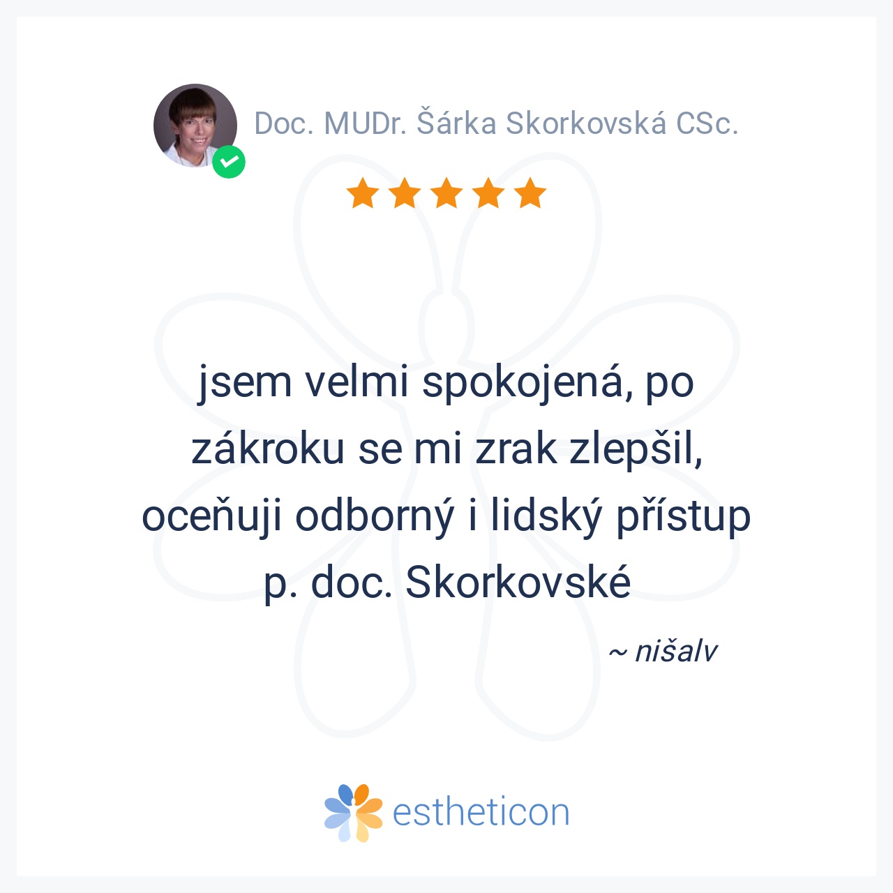 jsem velmi spokojená, po zákroku se mi zrak zlepšil, oceňuji odborný i lidský přístup p. doc. Skorkovské