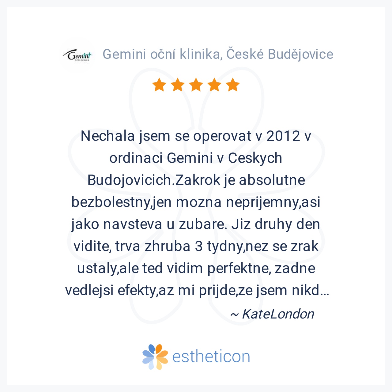 Nechala jsem se operovat v 2012 v ordinaci Gemini v Ceskych Budojovicich.Zakrok je absolutne bezbolestny,jen mozna neprijemny,asi jako navsteva u zubare. Jiz druhy den vidite, trva zhruba 3 tydny,nez se zrak ustaly,ale t... Více