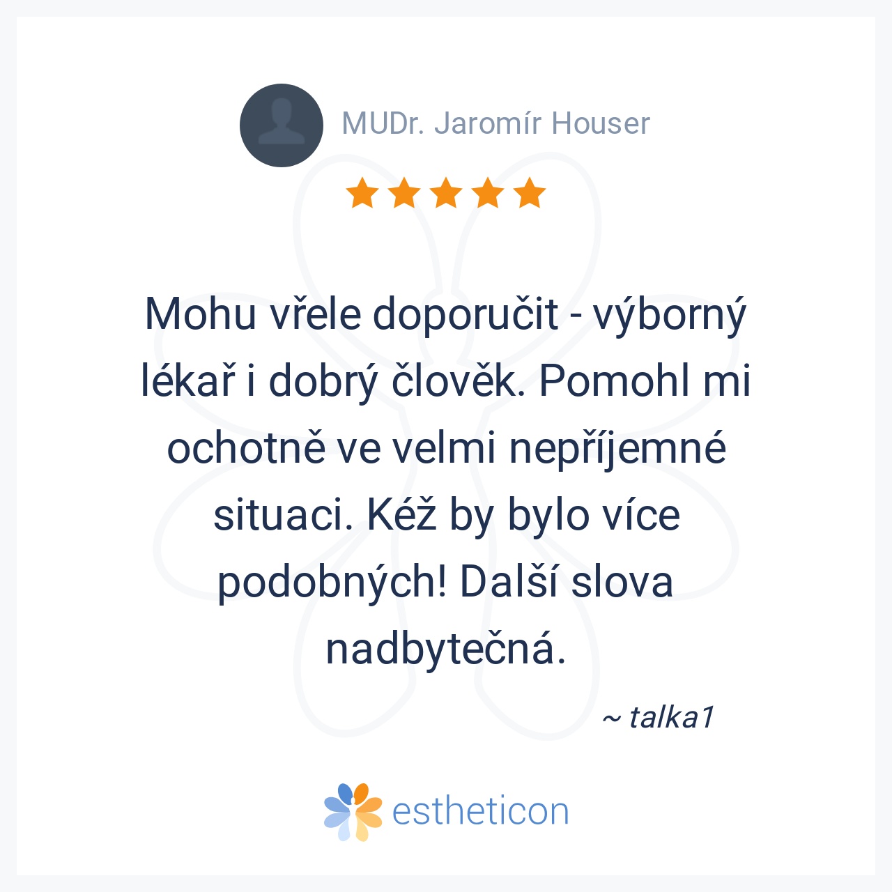 Mohu vřele doporučit - výborný lékař i dobrý člověk. Pomohl mi ochotně ve velmi nepříjemné situaci. Kéž by bylo více podobných! Další slova nadbytečná.