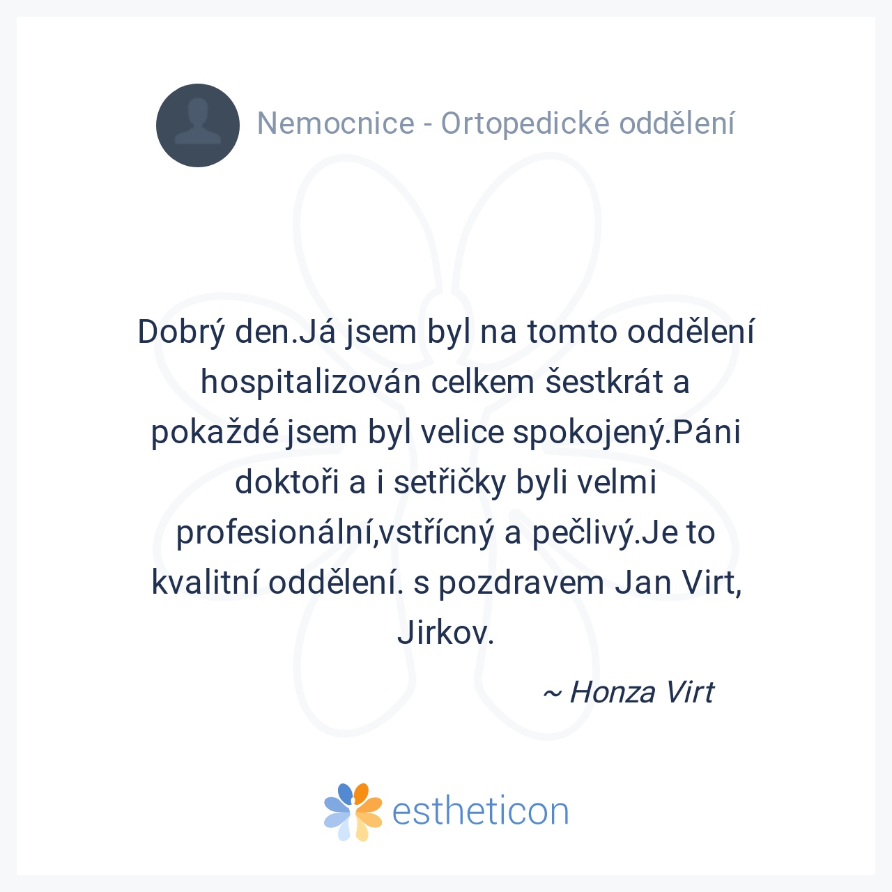Zkušenost mám pouze z ortopedického oddělení....co napsat? Po operaci TEP kolenního kloubu se objevily komplikace. Není zájem je odstranit. Neochota, arogantní a nepříjemné jednání, od lékaře se dovíte minimum informací.... Více