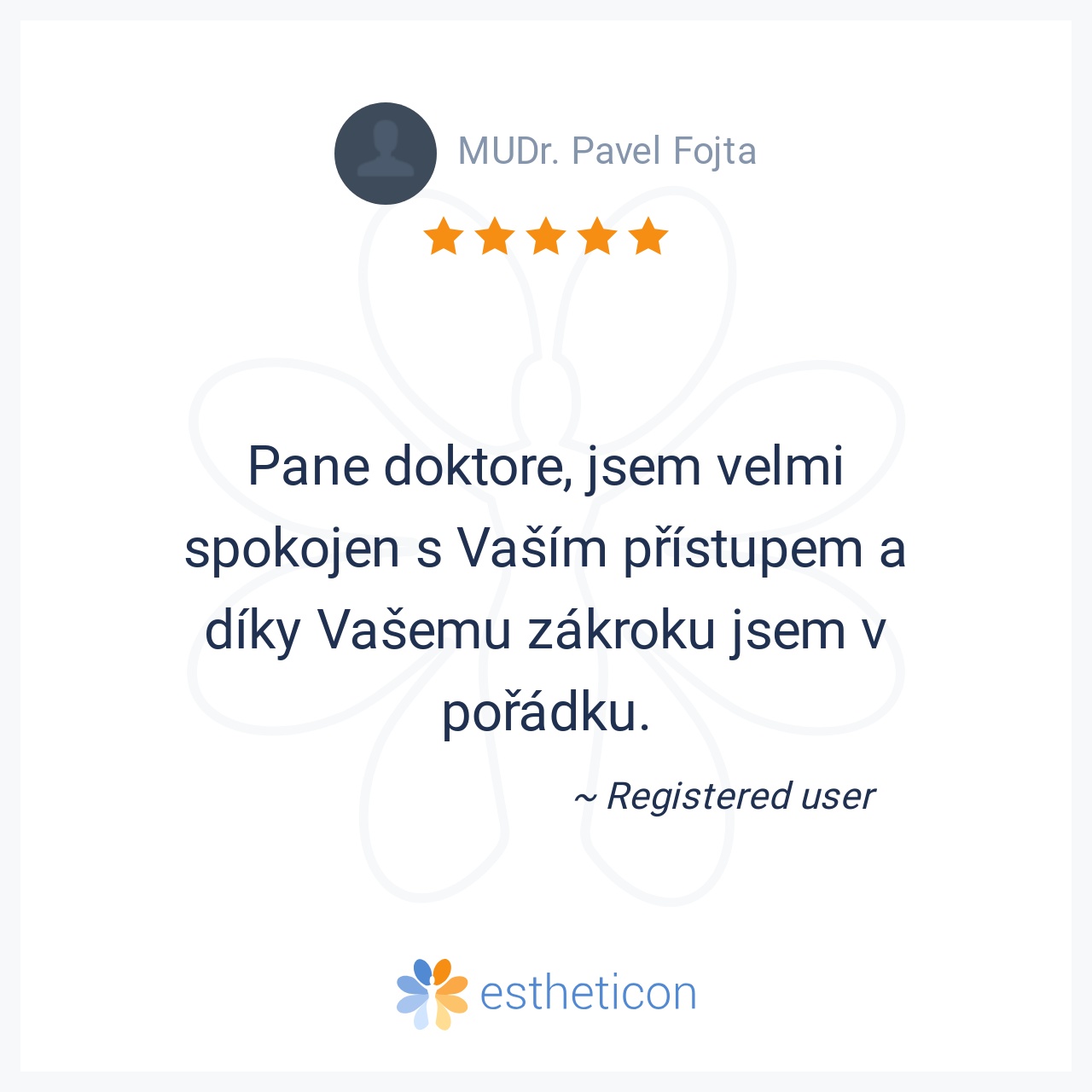 Pane doktore, jsem velmi spokojen s Vaším přístupem a díky Vašemu zákroku jsem v pořádku.