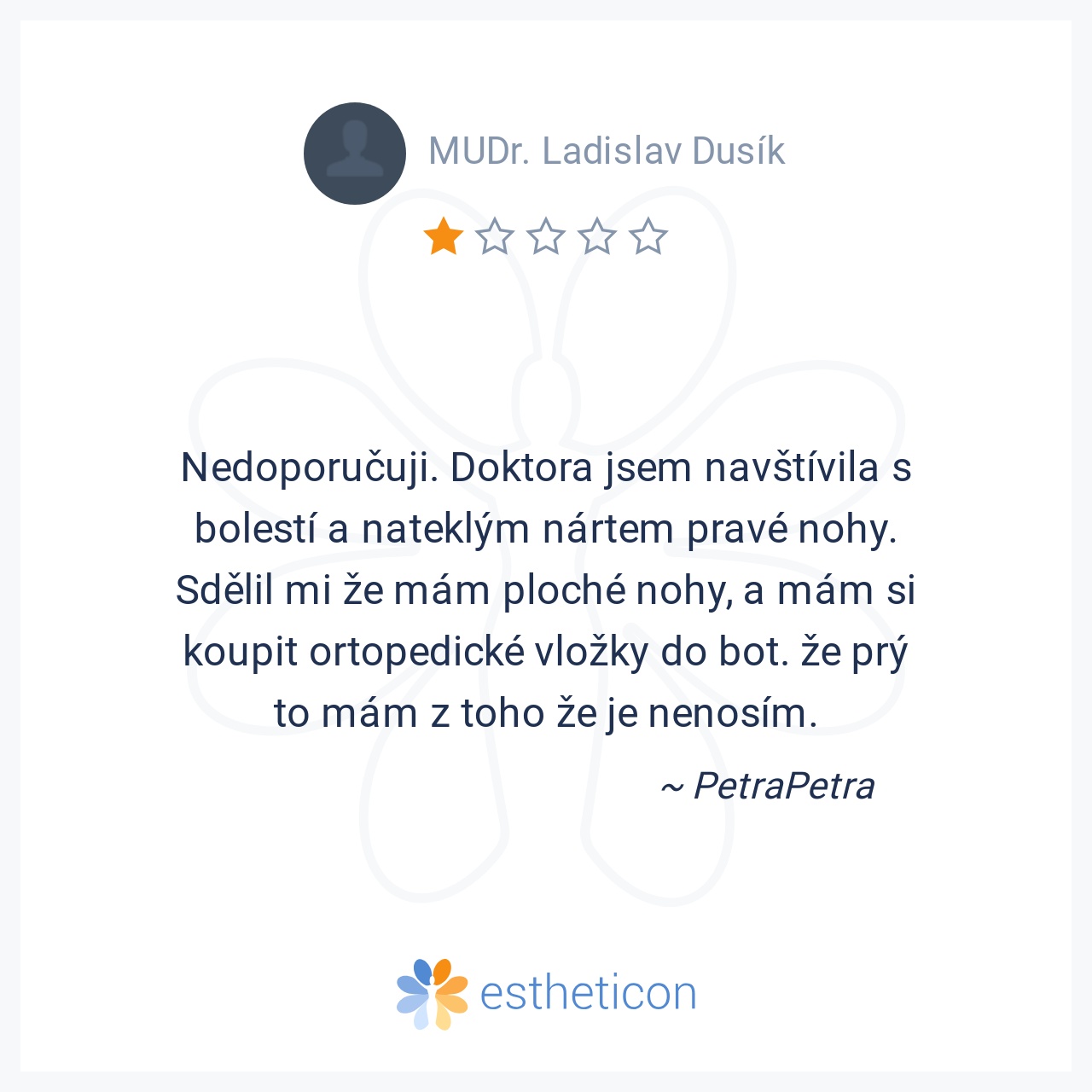 Nedoporučuji. Doktora jsem navštívila s bolestí a nateklým nártem pravé nohy. Sdělil mi že mám ploché nohy, a mám si koupit ortopedické vložky do bot. že prý to mám z toho že je nenosím.