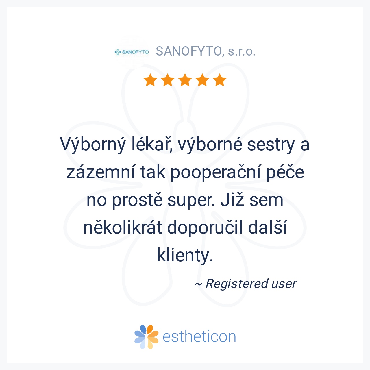 Výborný lékař, výborné sestry a zázemní tak pooperační péče no prostě super. Již sem několikrát doporučil další klienty.