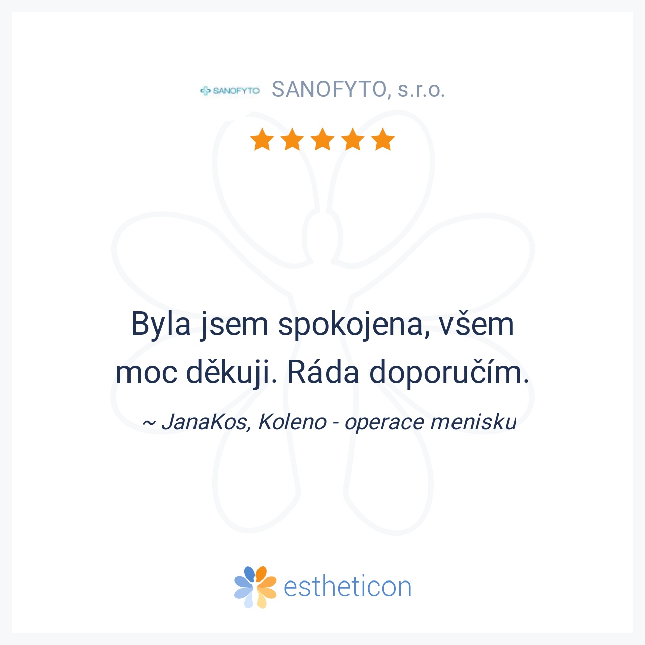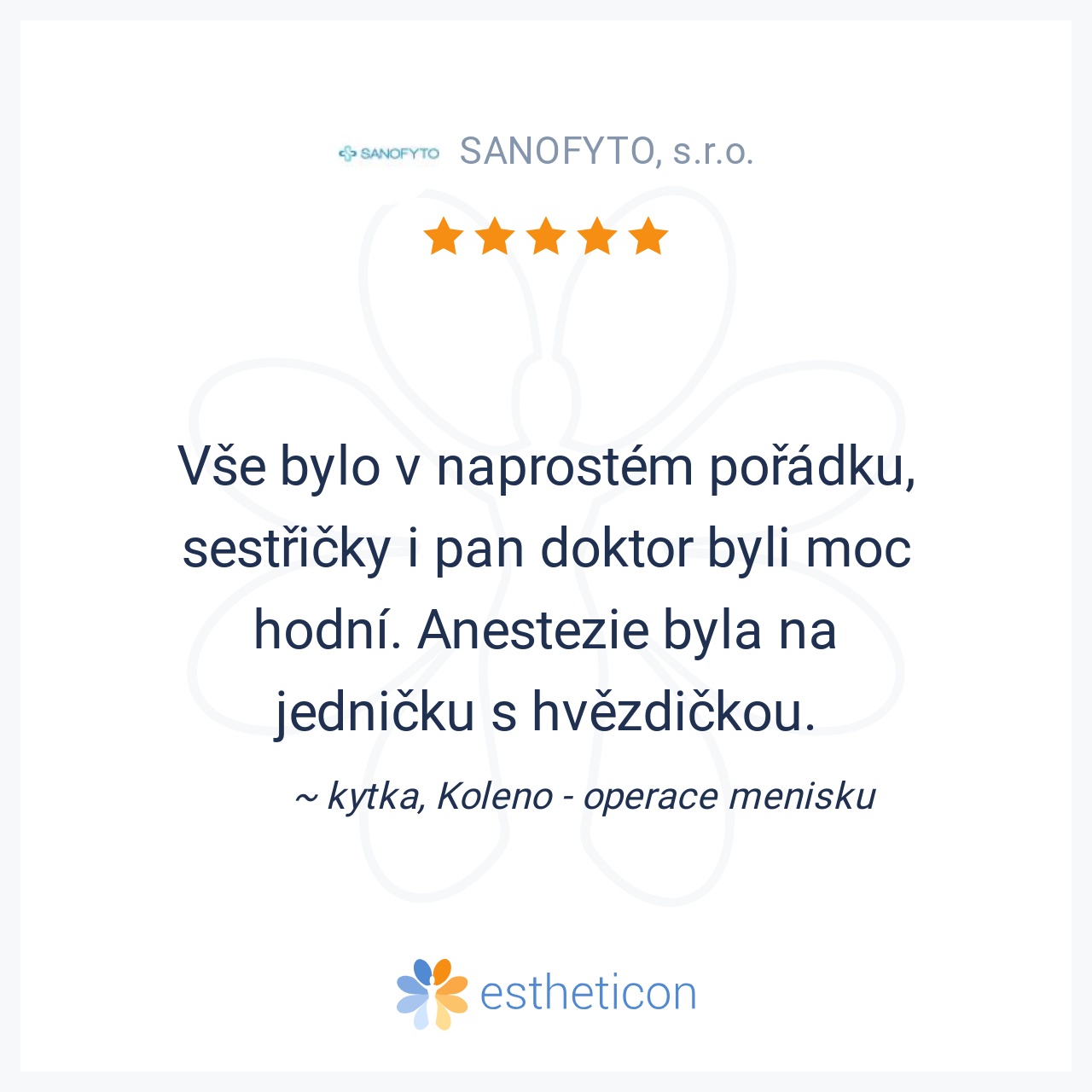 Doporučuji tuto kliniku byla jsem moc spokojená . Pokud by mě čekala další operace určitě bych ji podstoupila na Sanofyto. Měla jsem tu nejlepší péči.Moc děkuji.