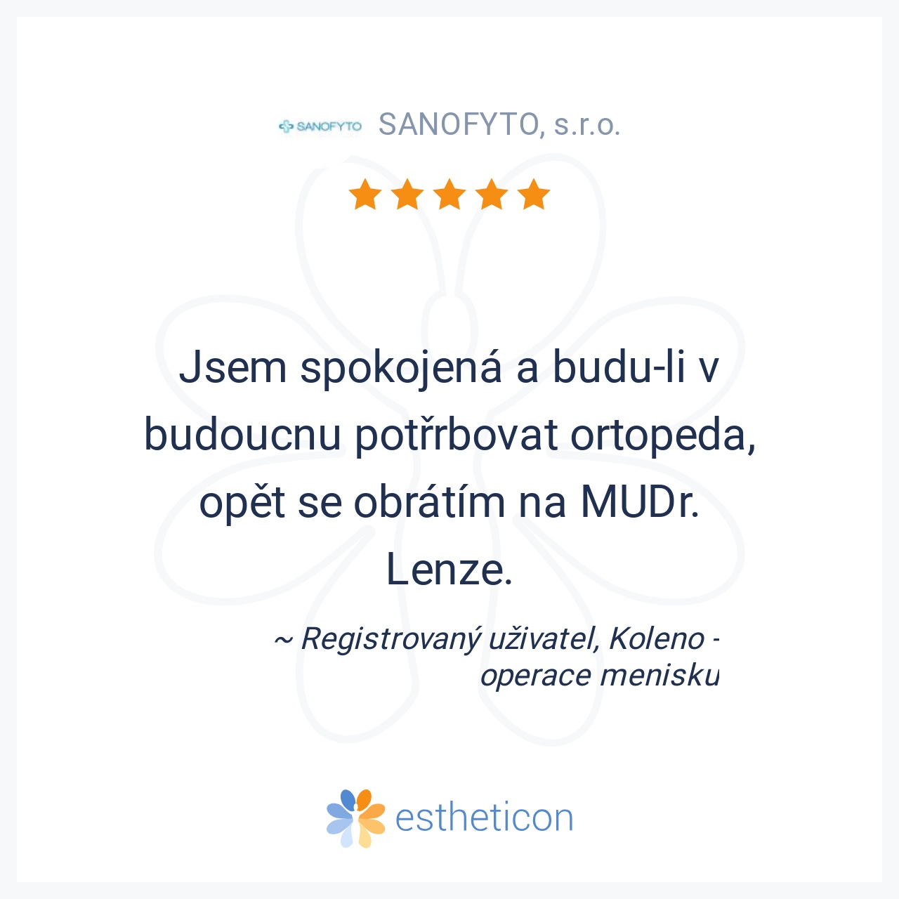 Jsem spokojená a budu-li v budoucnu potřrbovat ortopeda, opět se obrátím na MUDr. Lenze.