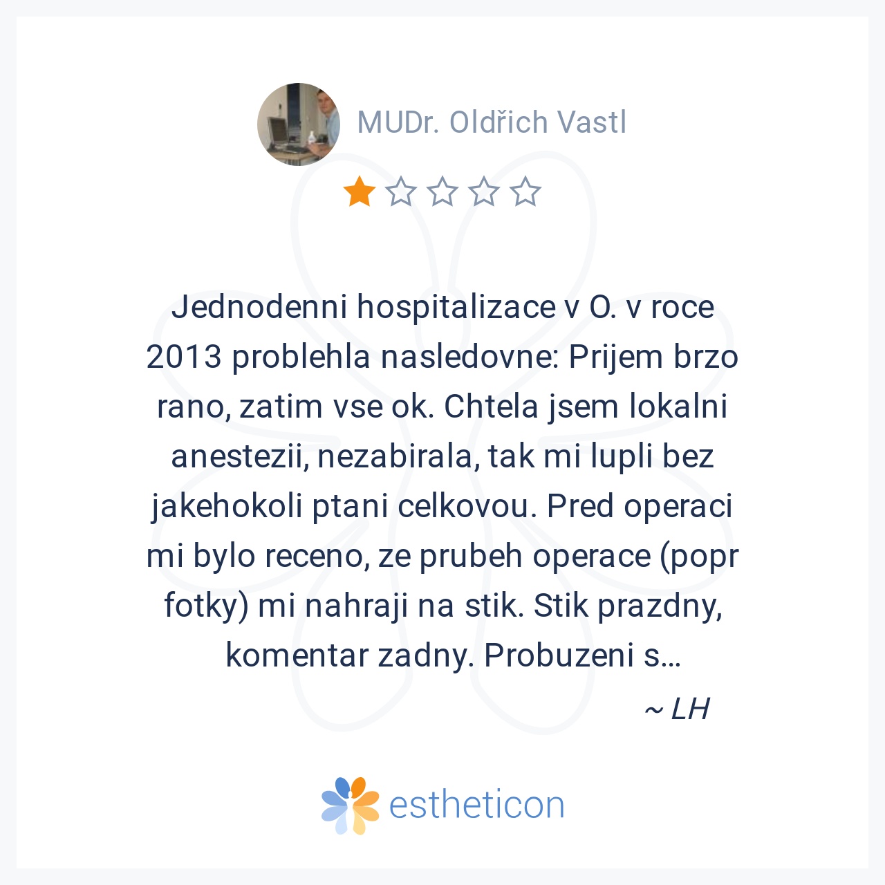 Jsem velice nespokojená, pan doktor mě operoval 2x, vůbec se mu to nepovedlo a bohužel jsem musela vyhledat pomoc jinde v Praze a nakonec mi dělali plastiku vazu , protože už jsem ho měla úplně přetrhán vaz