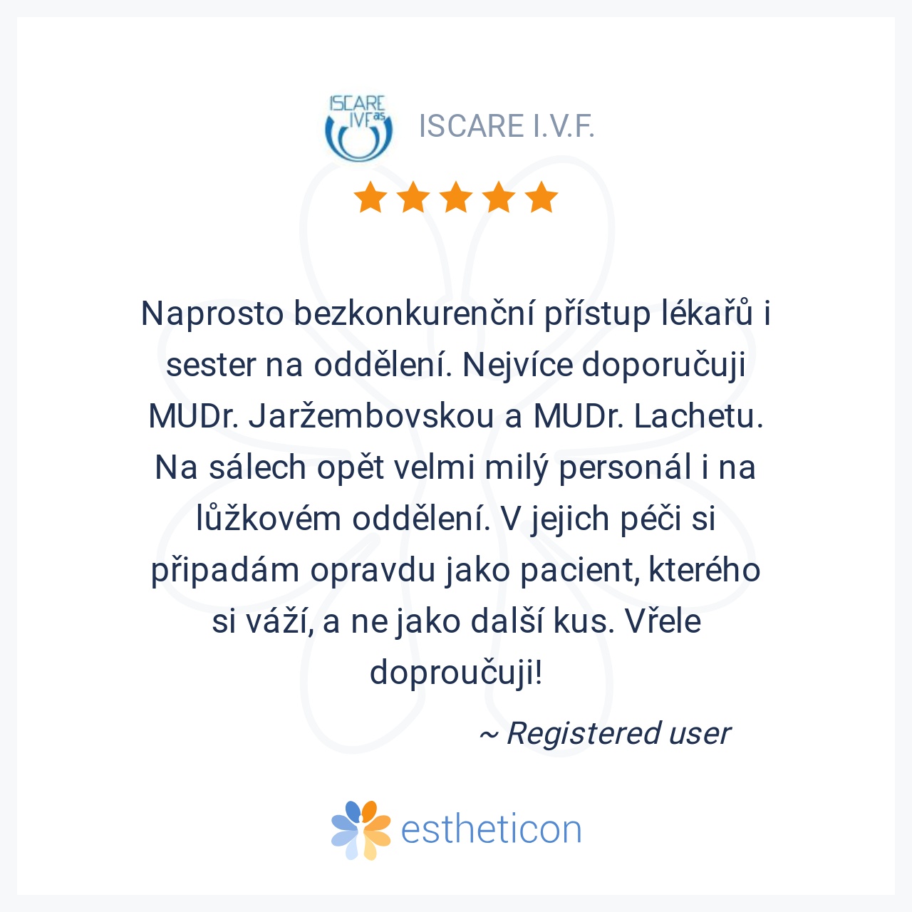 Naprosto bezkonkurenční přístup lékařů i sester na oddělení. Nejvíce doporučuji MUDr. Jaržembovskou a MUDr. Lachetu. Na sálech opět velmi milý personál i na lůžkovém oddělení. V jejich péči si připadám opravdu jako pacient, kterého si váží, a ne jako další kus. Vřele doproučuji!