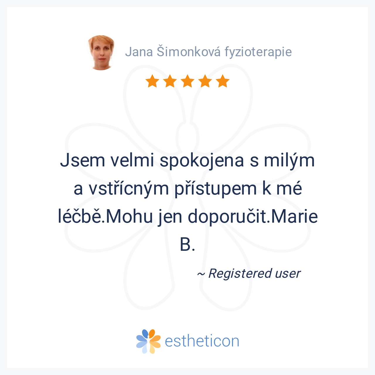 Jsem velmi spokojena s milým a vstřícným přístupem k mé léčbě.Mohu jen doporučit.Marie B.