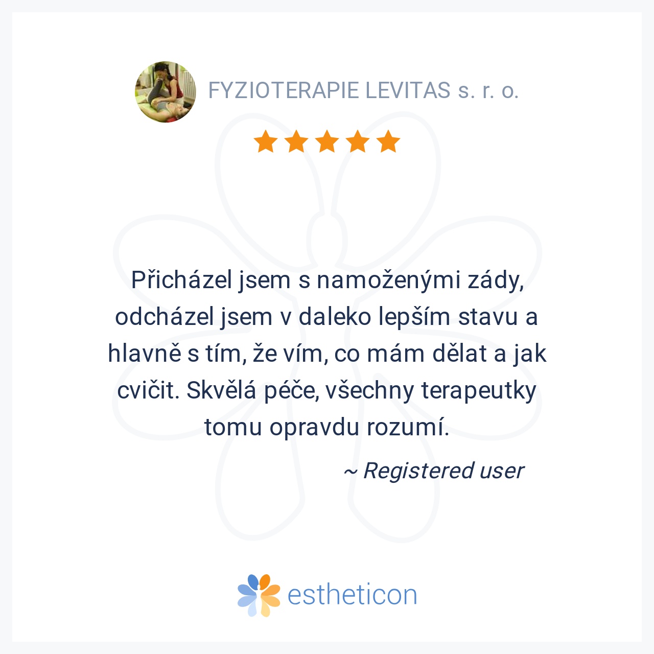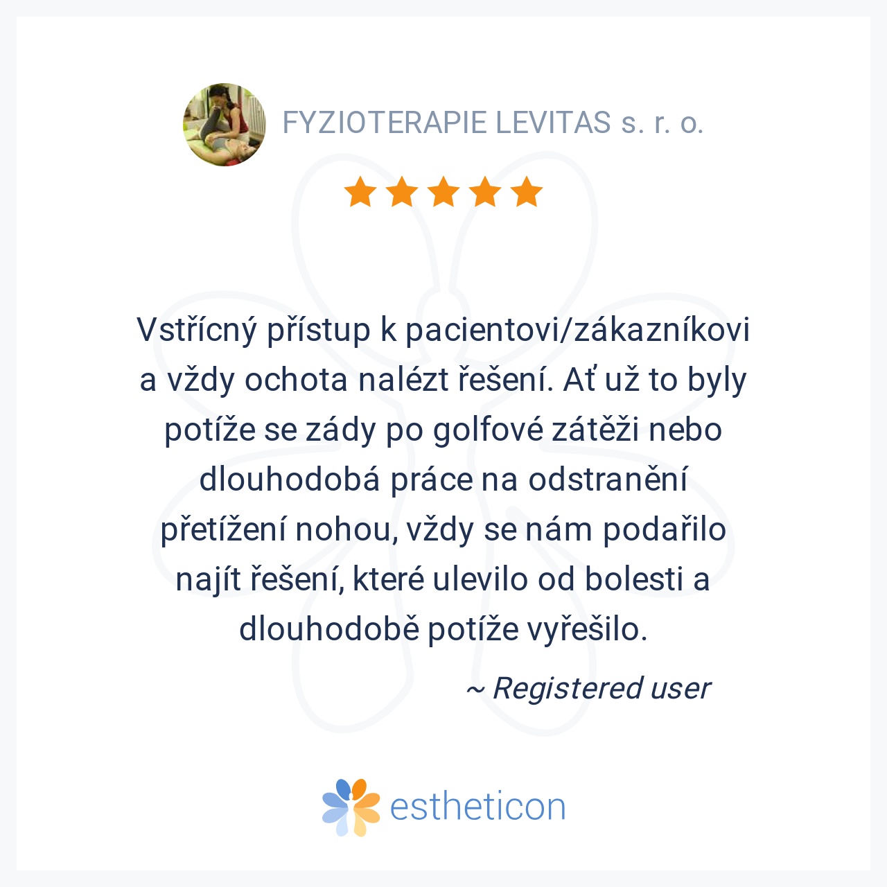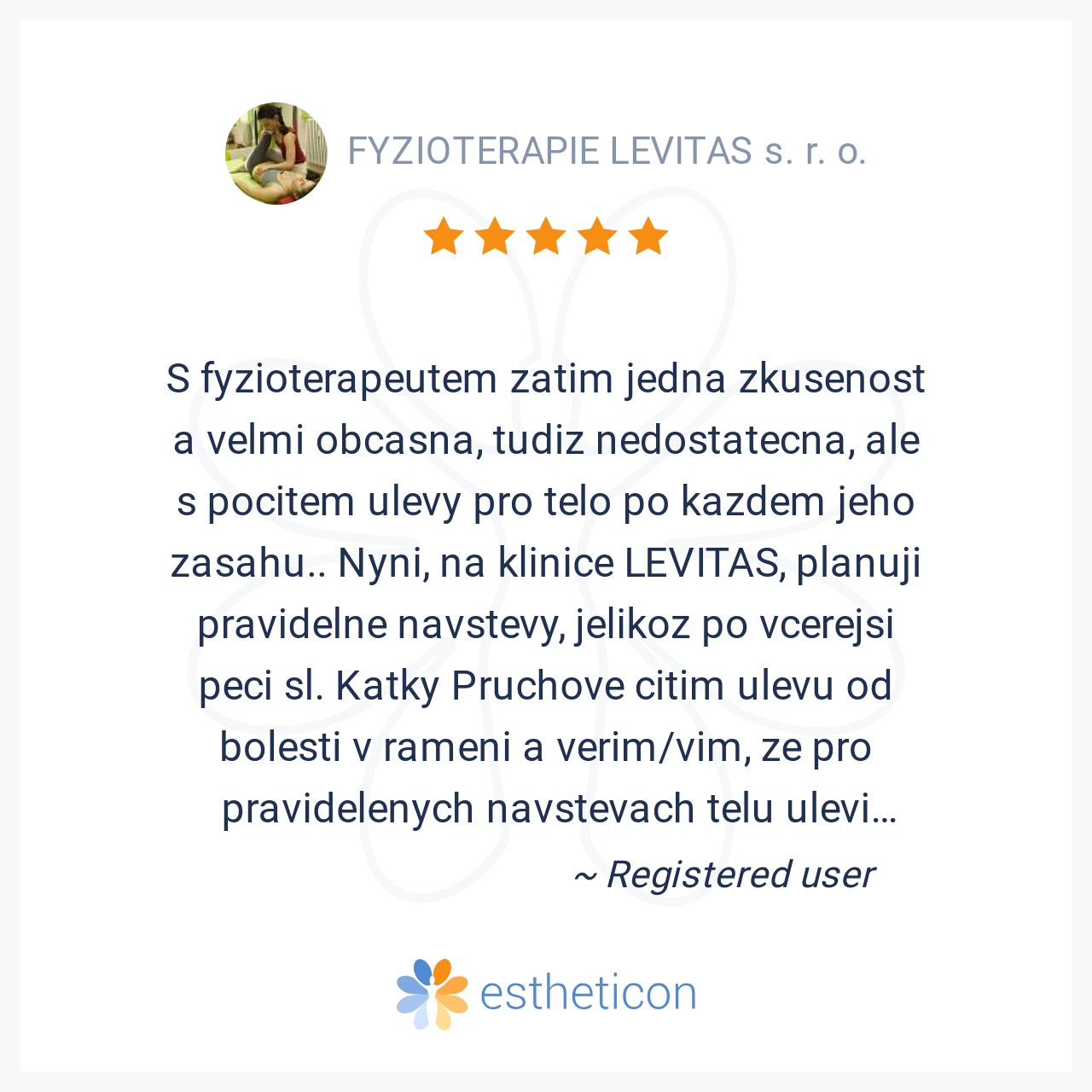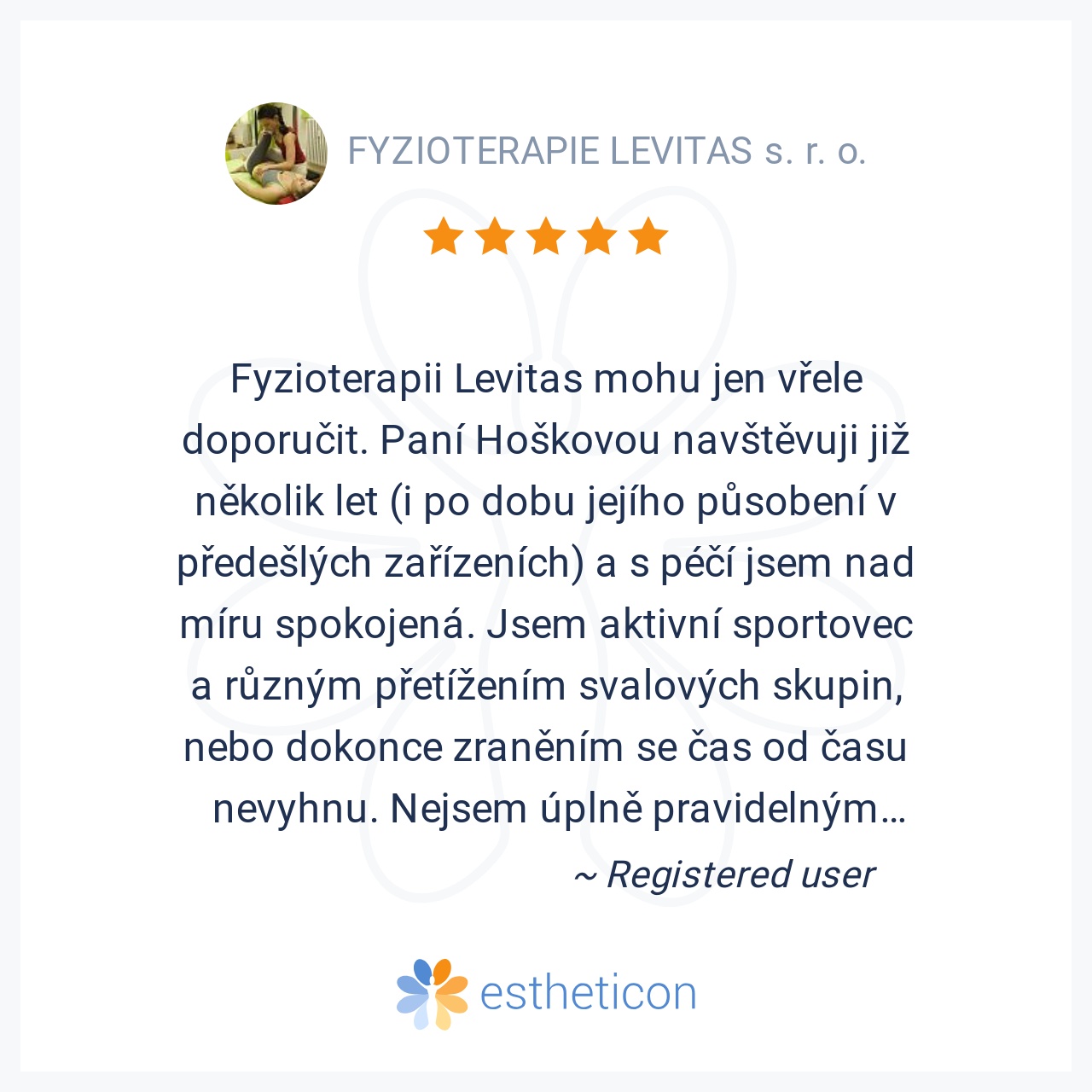 Fyzioterapii Levitas mohu jen vřele doporučit. Paní Hoškovou navštěvuji již několik let (i po dobu jejího působení v předešlých zařízeních) a s péčí jsem nad míru spokojená. Jsem aktivní sportovec a různým přetížením sva... Více