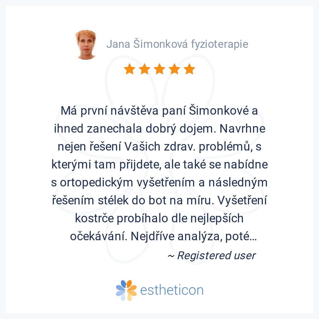 Má první návštěva paní Šimonkové a ihned zanechala dobrý dojem. Navrhne nejen řešení Vašich zdrav. problémů, s kterými tam přijdete, ale také se nabídne s ortopedickým vyšetřením a následným řešením stélek do bot na míru... Více